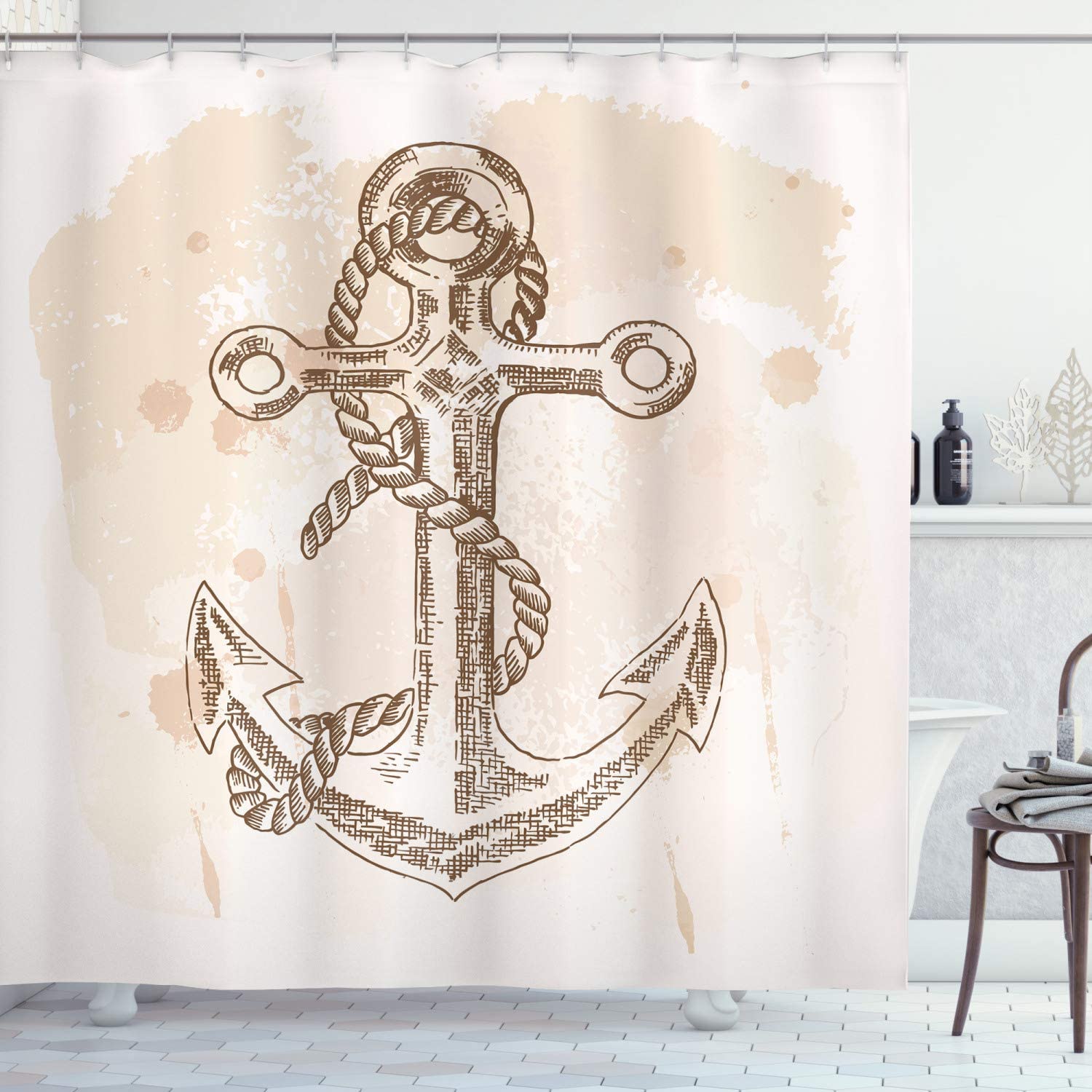 Anchor Shower Curtain, Illustration of Navy Summer Holiday Print- Bathroom Decor