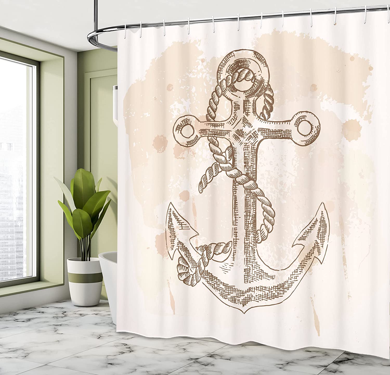 Transform your bathroom into a coastal oasis with the Anchor Shower Curtain, featuring an enchanting illustration of a navy summer holiday print. This curtain captures the essence of a beachside getaway, bringing a touch of nautical charm to your bathroom decor.