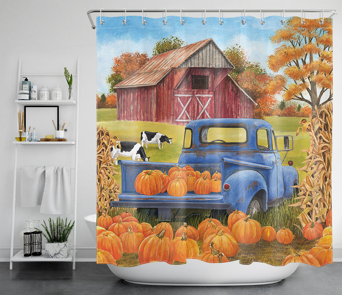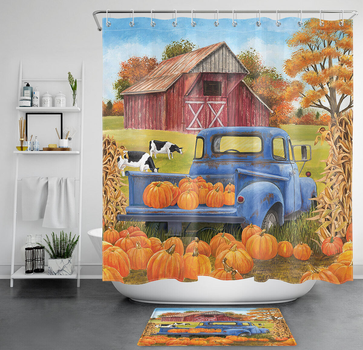 Autumn Farmhouse Sunflower Pumpkins Maple Shower Curtain in Impermeable Fabric – Perfect for Rustic Bathroom Decor