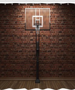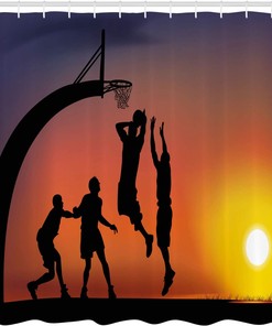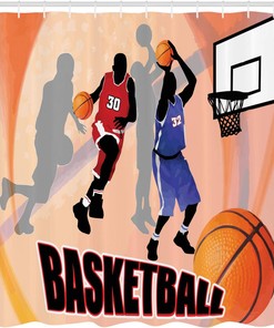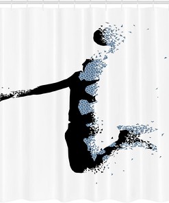 Basketball Shower Curtain, Hand Drawn Basketball Player Jumping Art, Cloth Bathroom Decor W, Cinnamon, Black