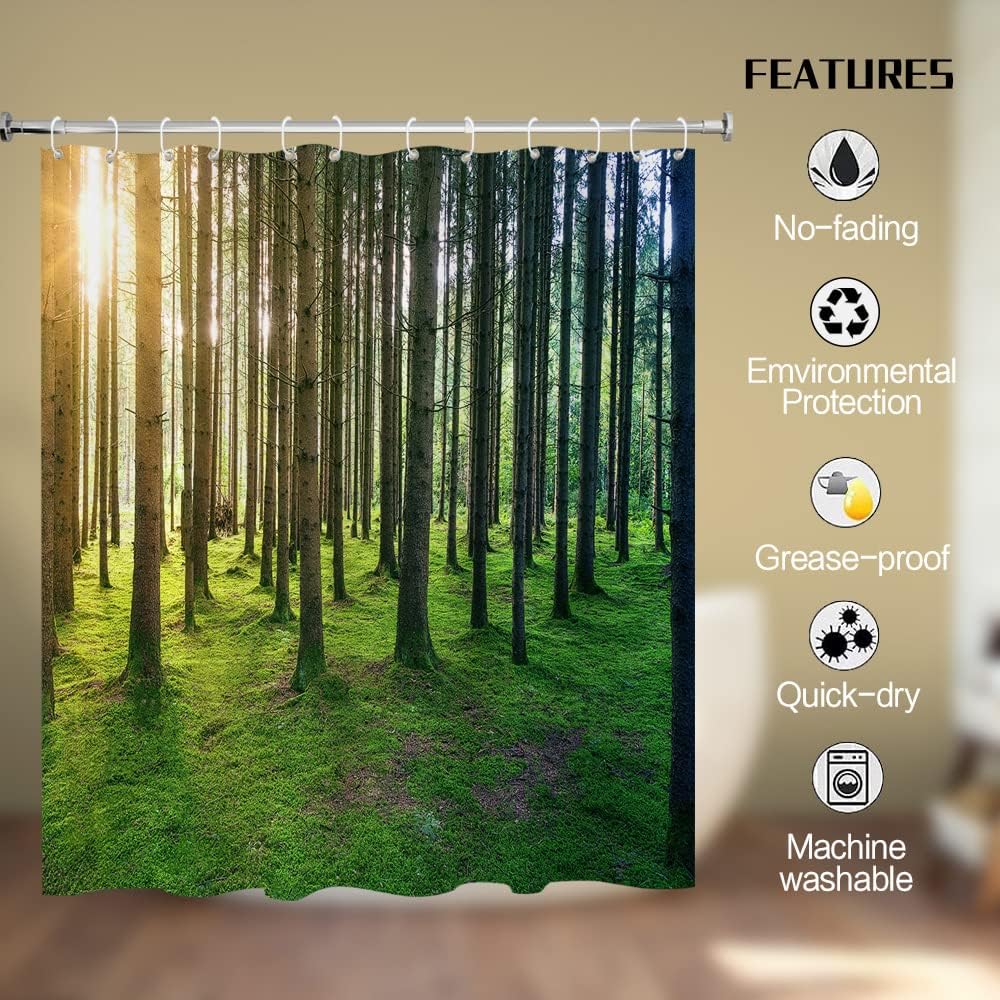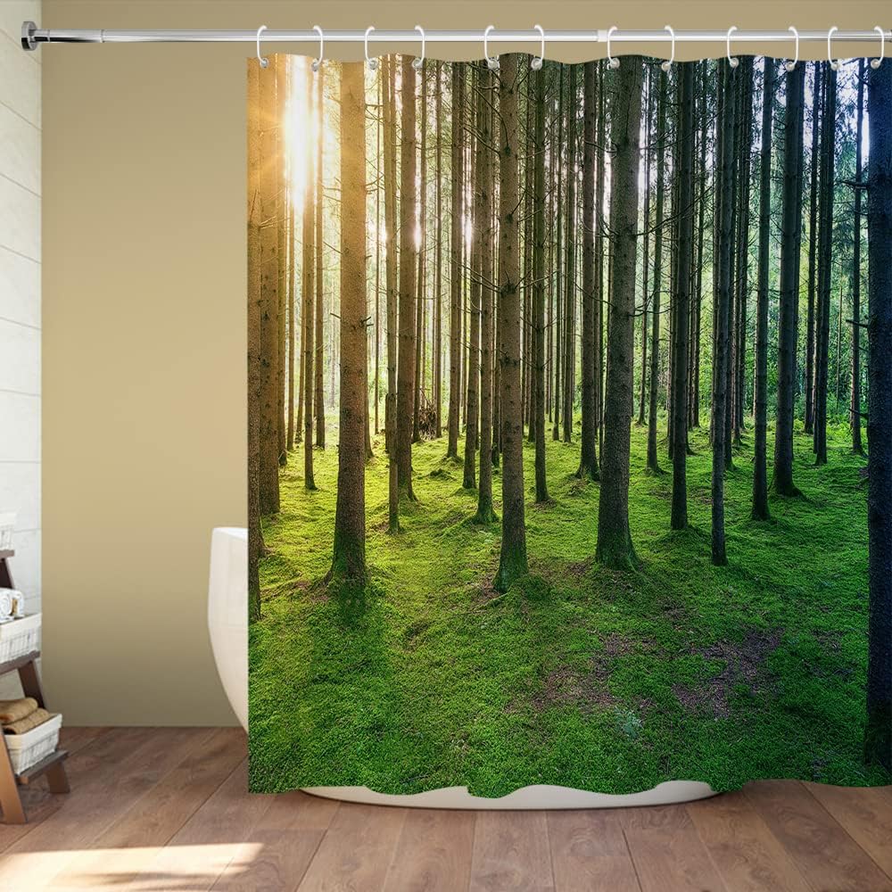 Birch Forest Sunshine Shower Curtain for Nature and Landscape Bathroom Decor