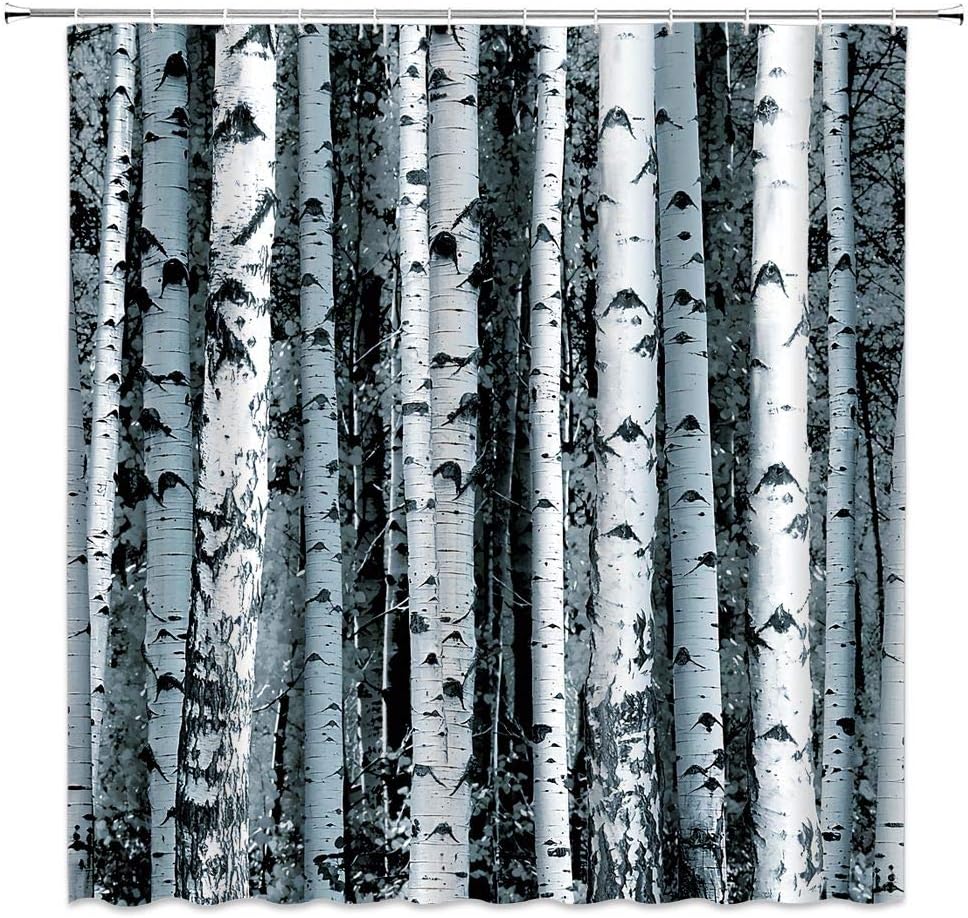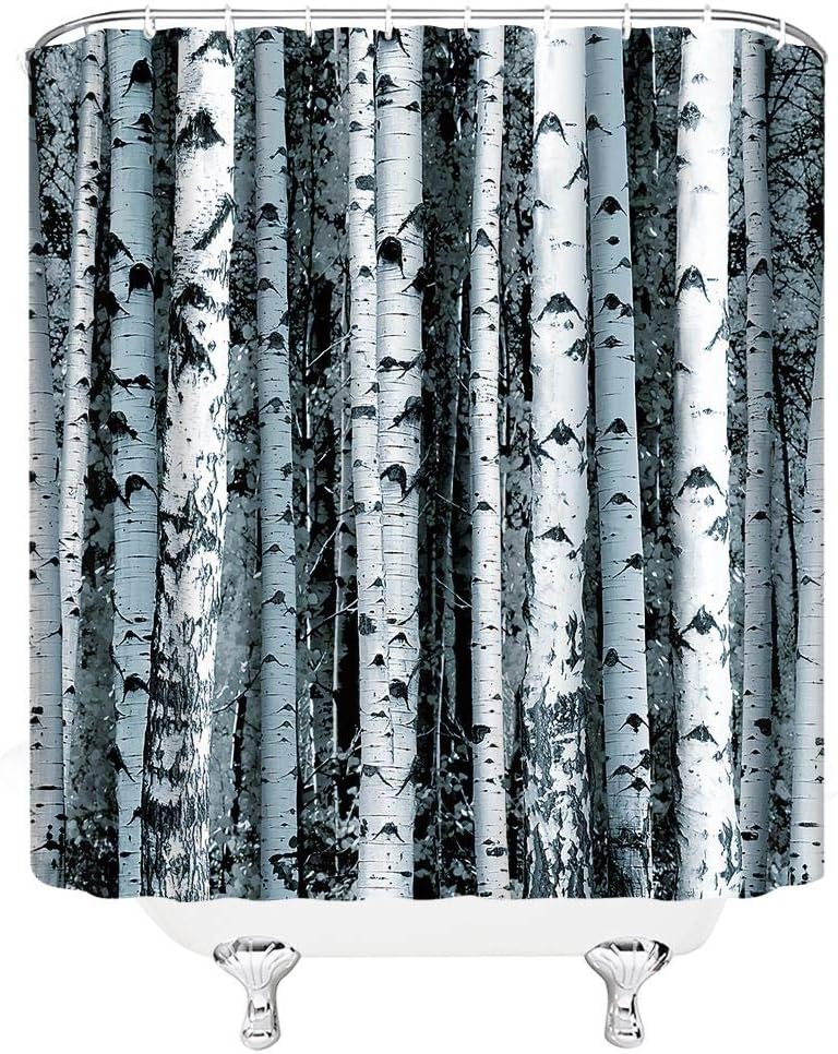 Birch Tree Forest Shower Curtain Blue Abstract Trunk Bathroom Decor