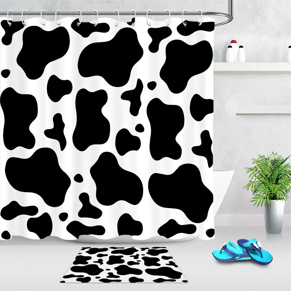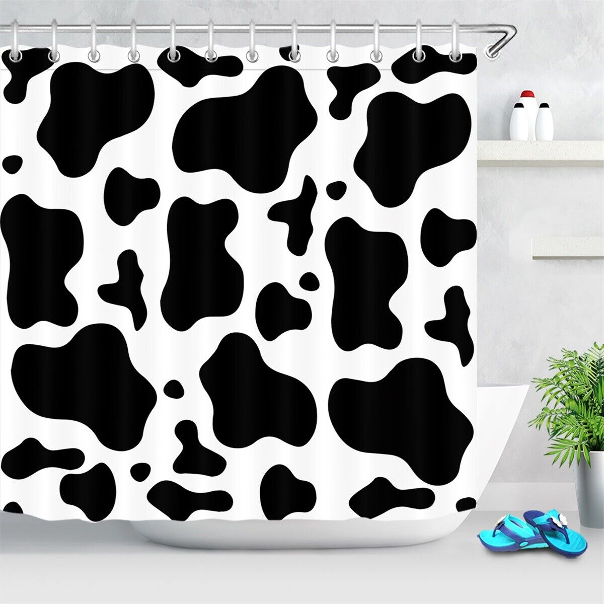 Black and White Cow Print Shower Curtain, Country Themed Bathroom Accessory