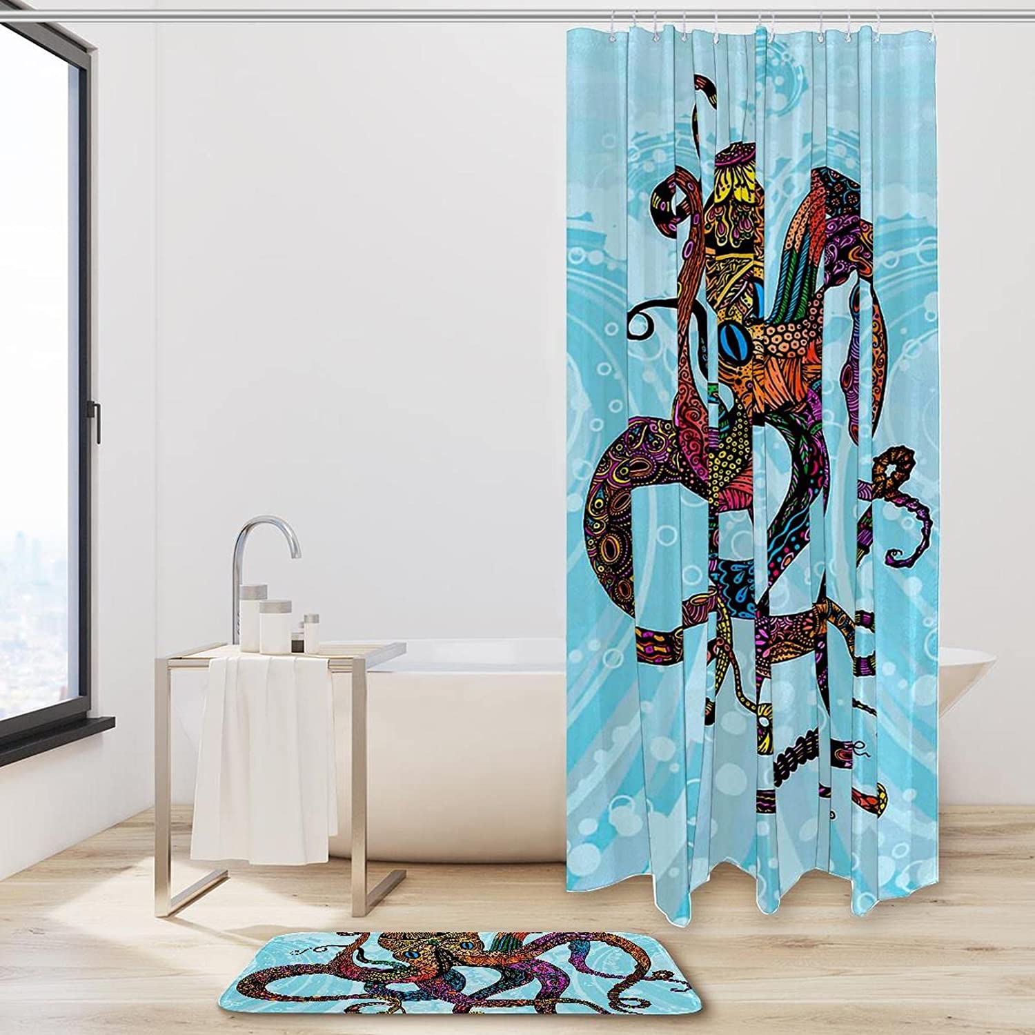 Blue Octopus Shower Curtain in Waterproof Fabric for Bathroom Decoration