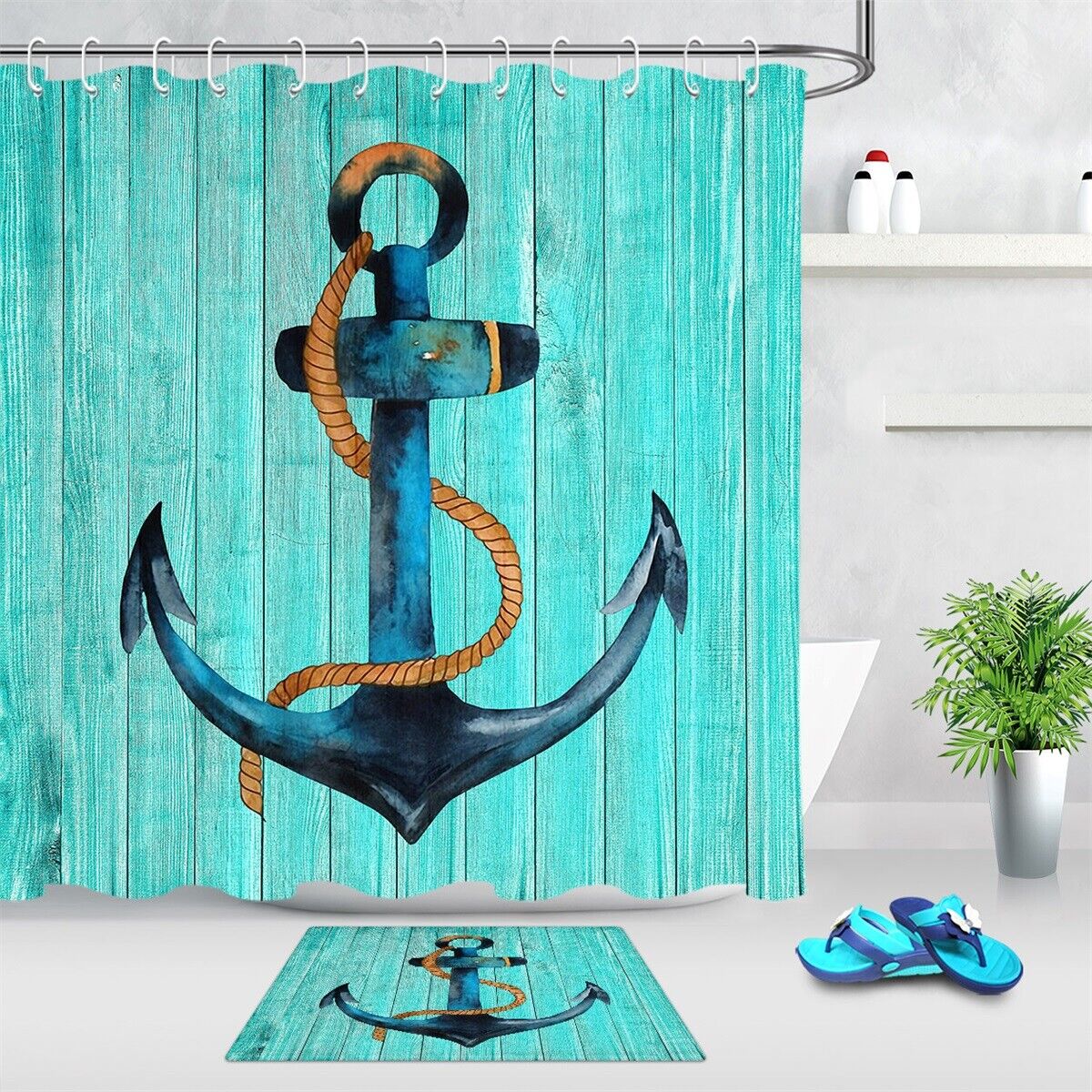 Blue Painted Anchor Shower Curtain Bathroom Decor