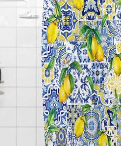 Blue Tiles Lemon Shower Curtain with Chic Summer Fruit Print – Home Bathroom Decoration