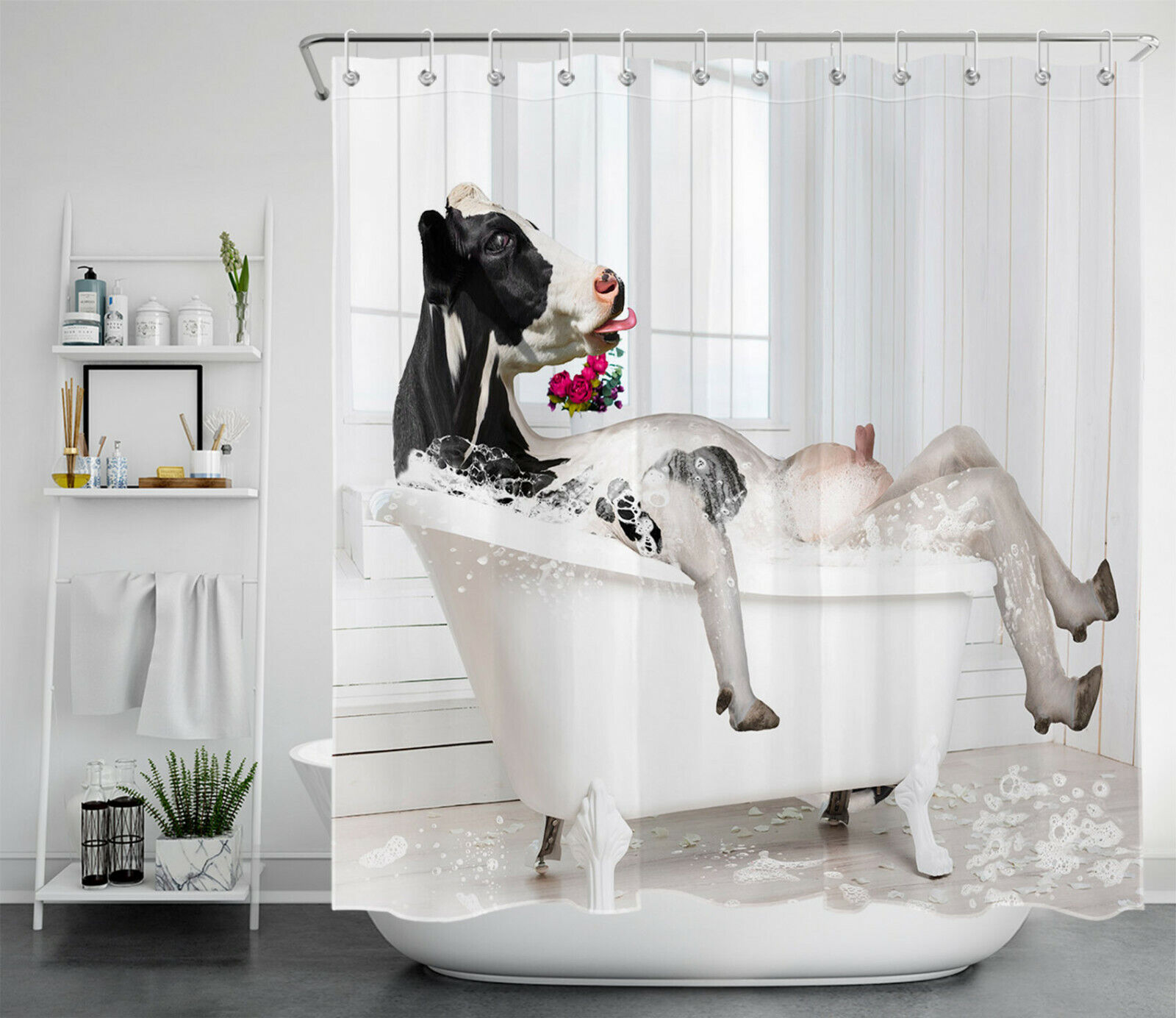 Bubble Bath Funny Cow Shower Curtain for Farmhouse Bathtub Bathroom Decor with Home Decor Touches