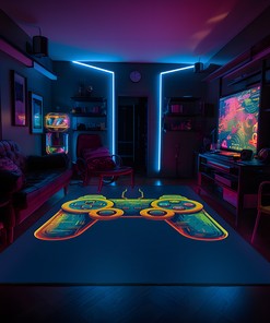 Colorful Game Controller Area Rugs for Game Room or Bedroom, Shufflezone Gaming Carpet, Teen Boys’ Gaming Rugs