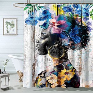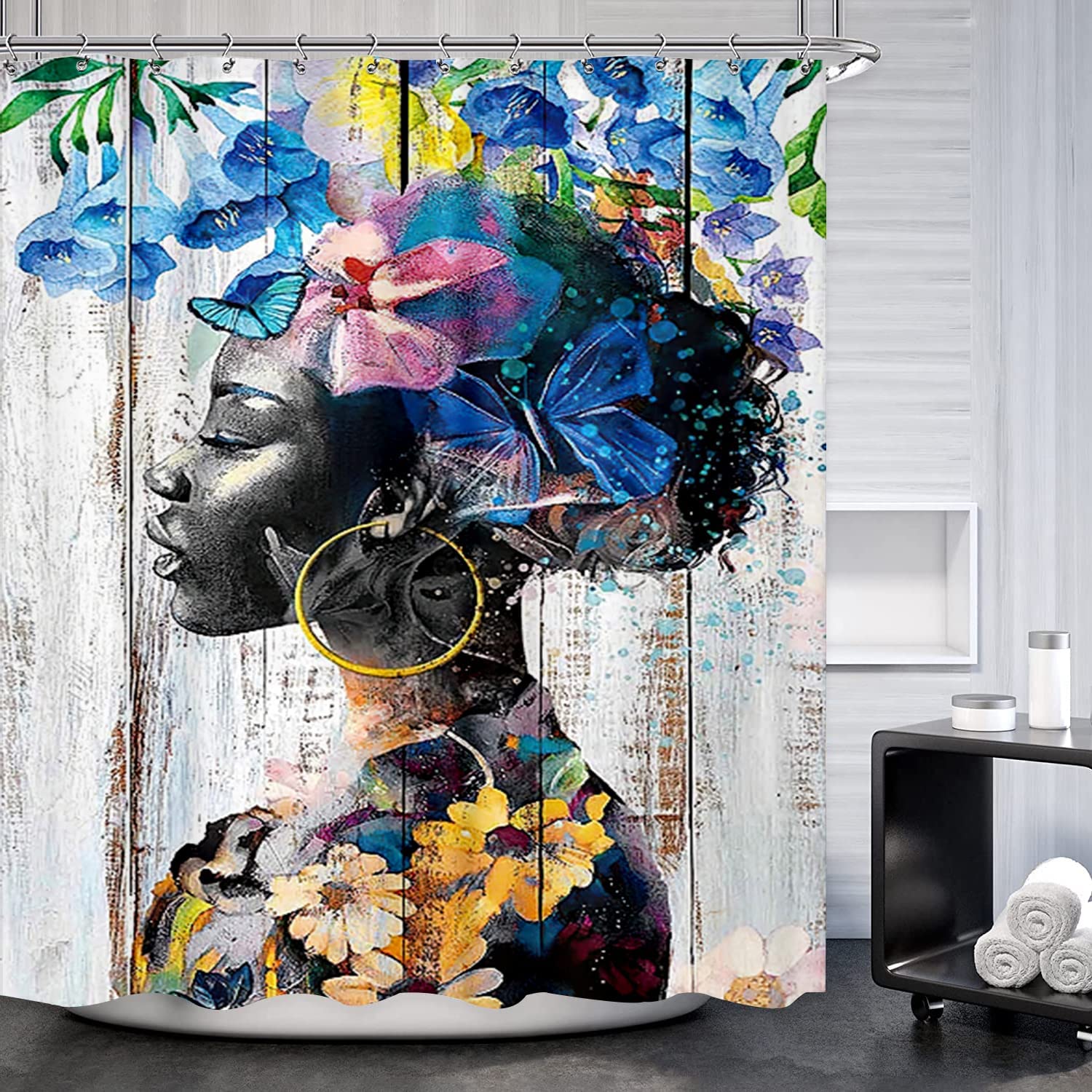 The colorful wood boho theme is perfect for adding a touch of style and personality to your bathroom. The butterfly lady and African-American woman print are both beautiful and empowering images that will make you feel confident and beautiful every time you take a shower.