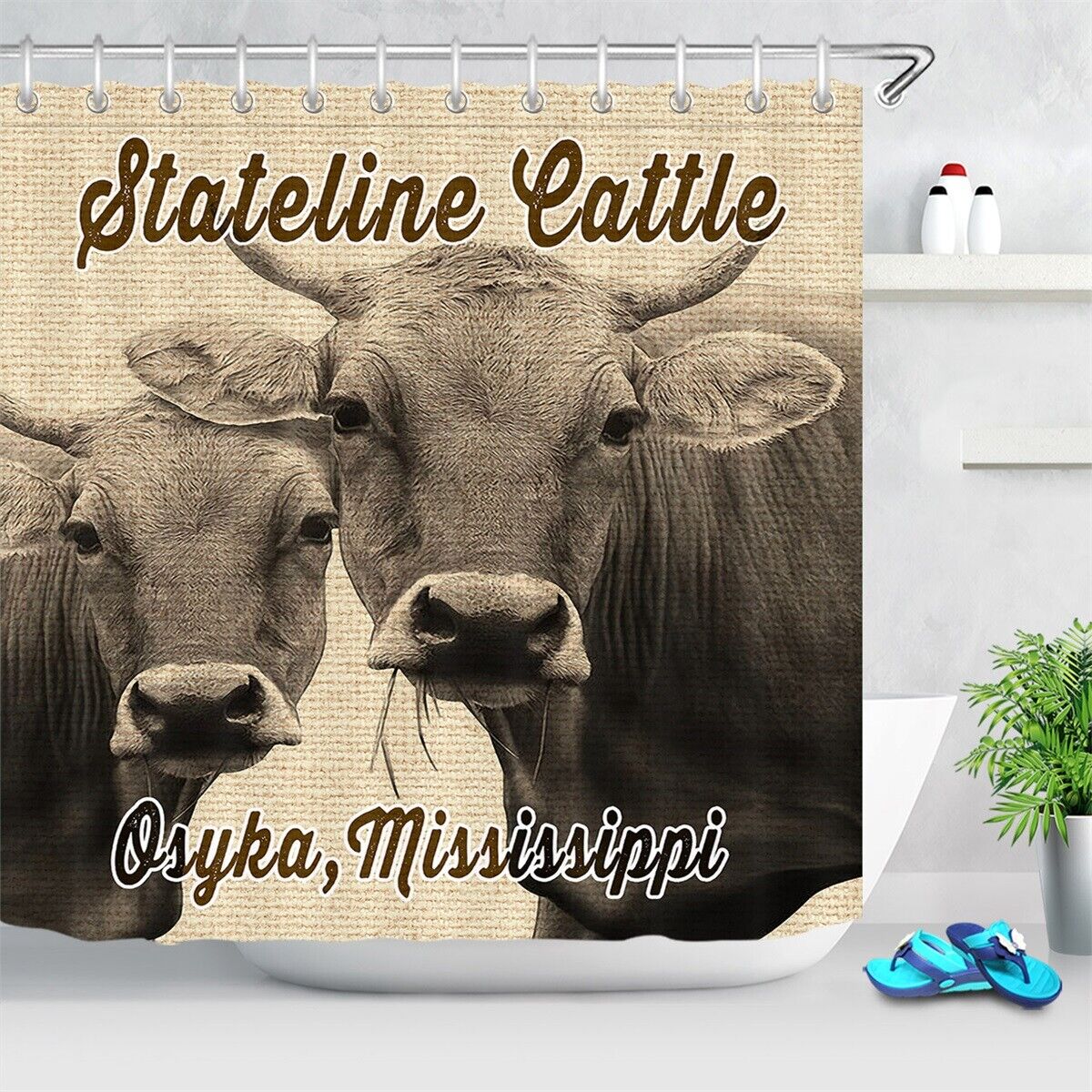 Country Cattle Shower Curtain, Farm Animal Bathroom Decoration