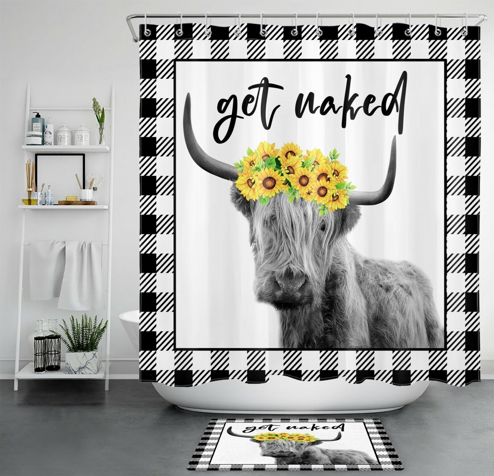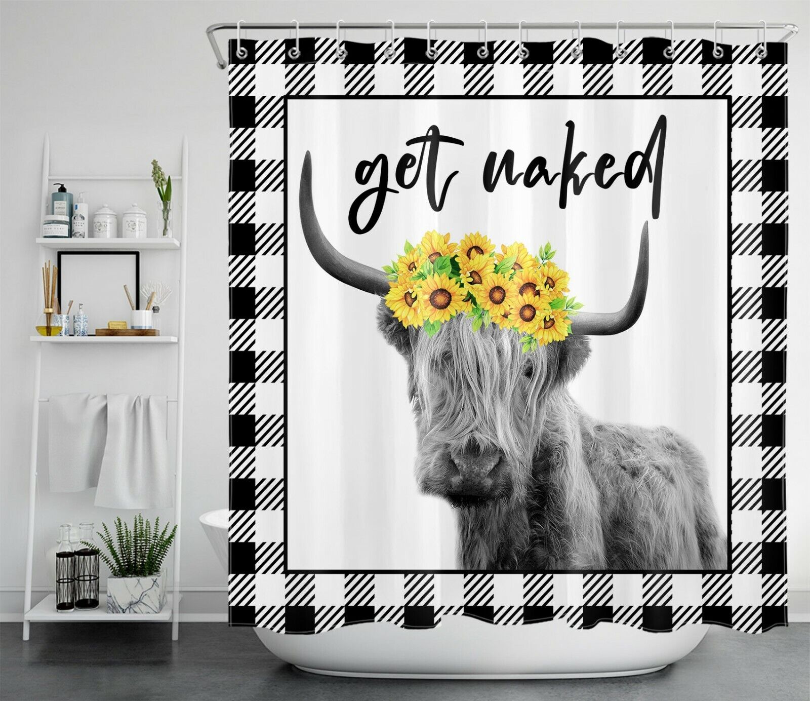 Cow Check Plaid Shower Curtain for Country Bathroom Decor