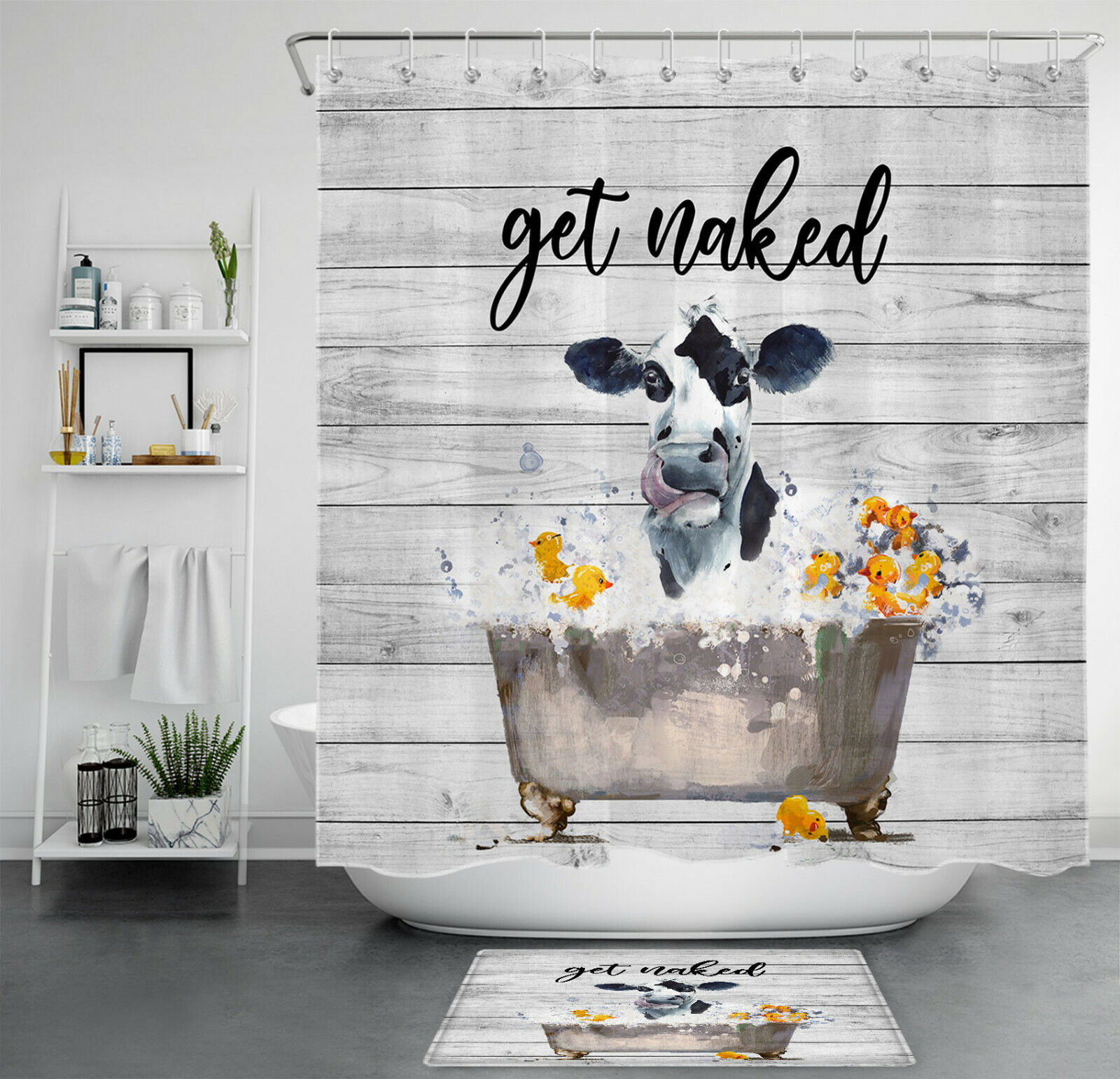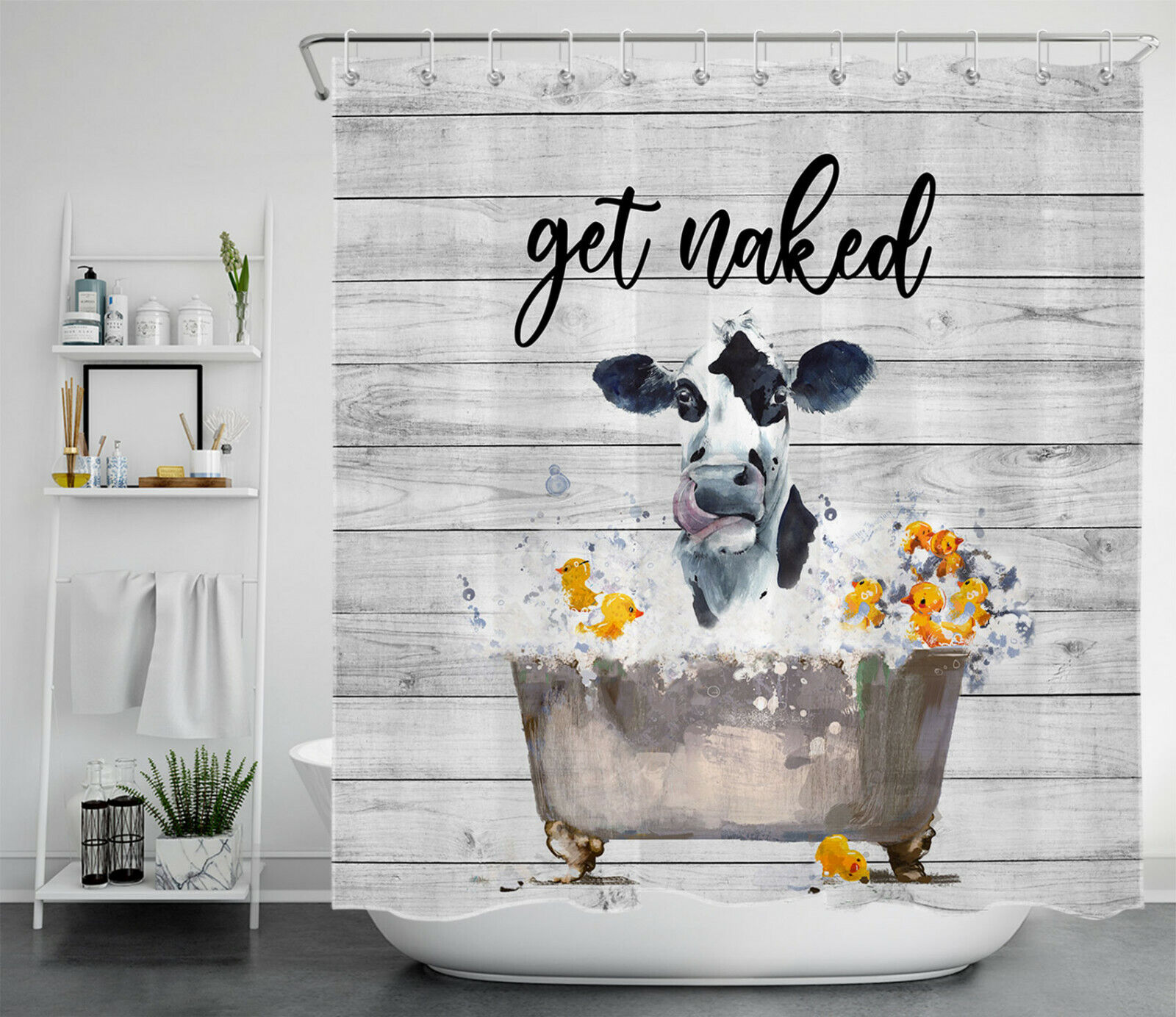 Cow Rustic Planks Shower Curtain for Country Bathroom Decor