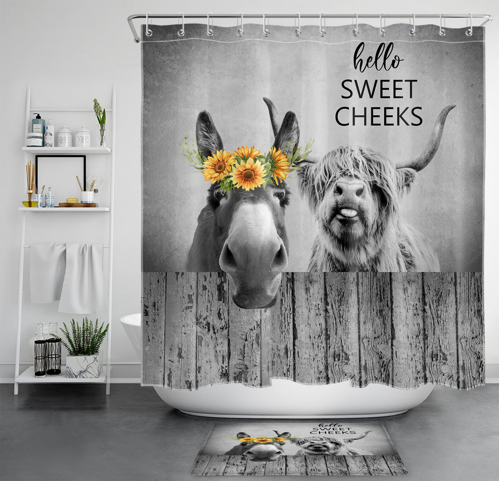 Cow with Flowers Shower Curtain – Farmhouse Animal Bathroom Curtain