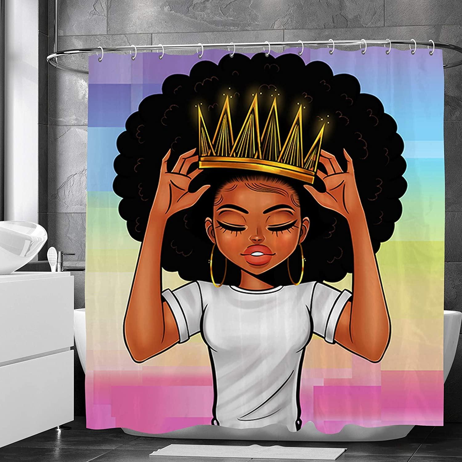 Crown-Wearing African American Women Black Girl Shower Curtain for Regal Bathroom Decor