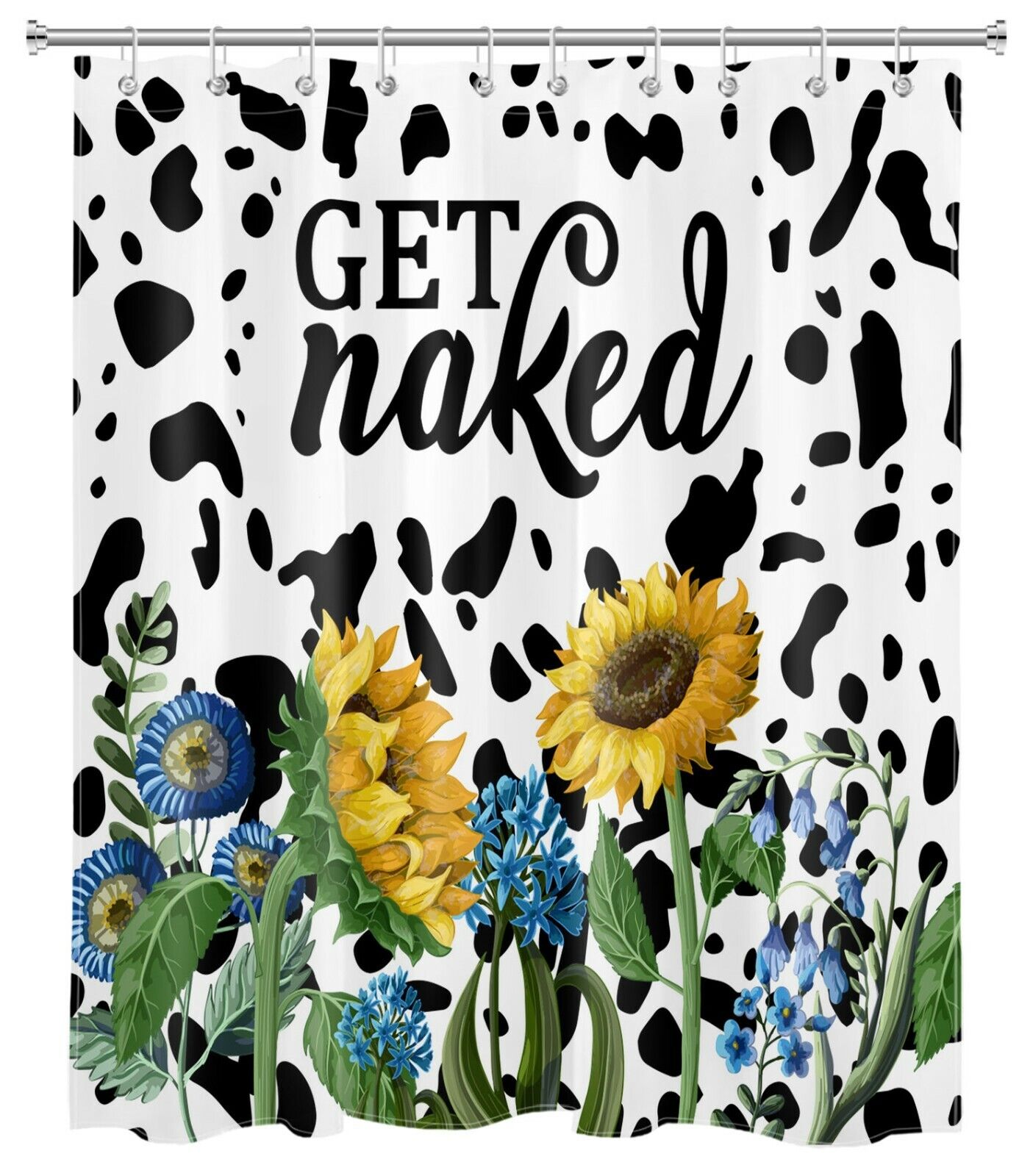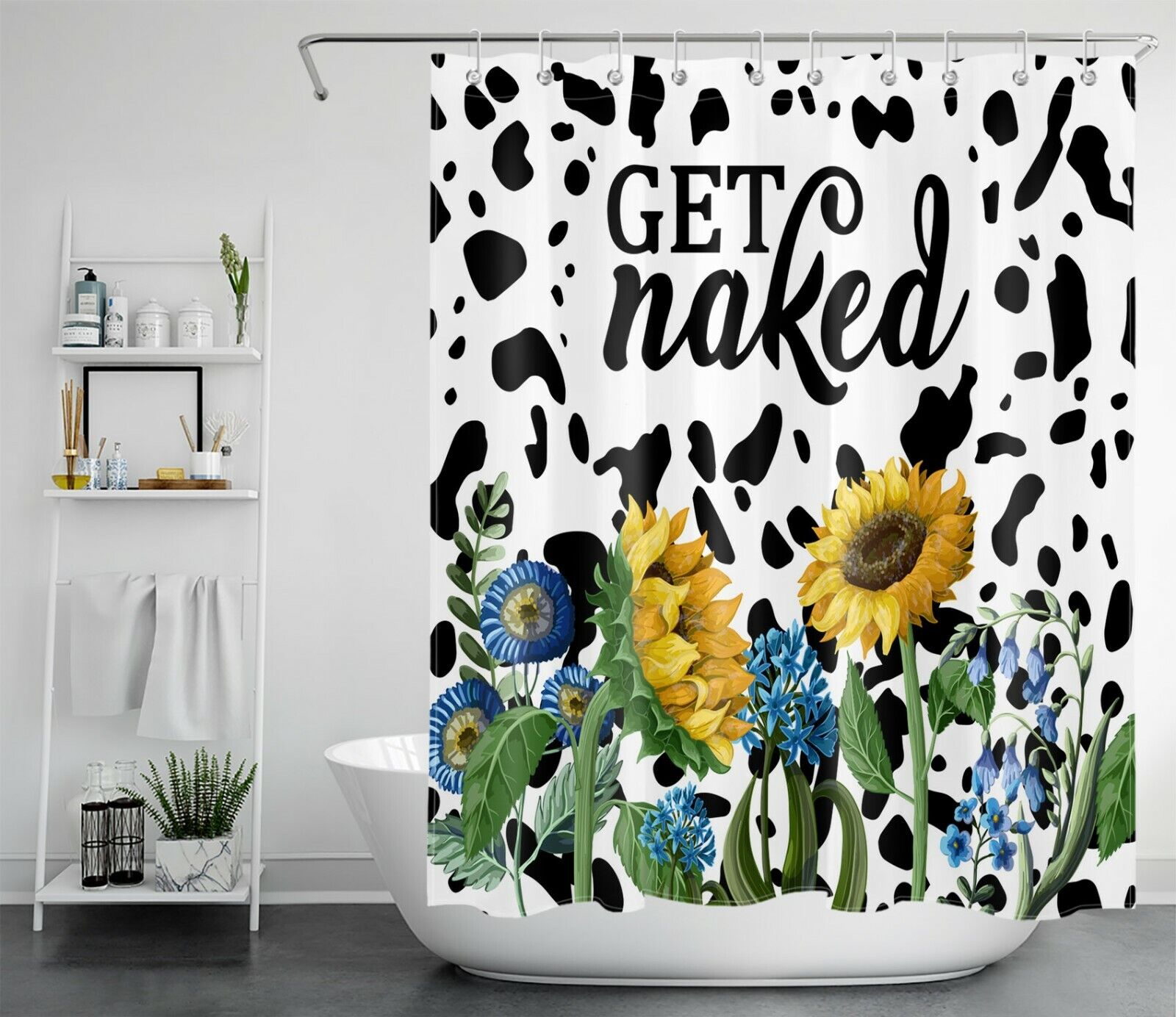 Cute Cow Print Bathroom Decor with Shower Curtain and Toilet Mat