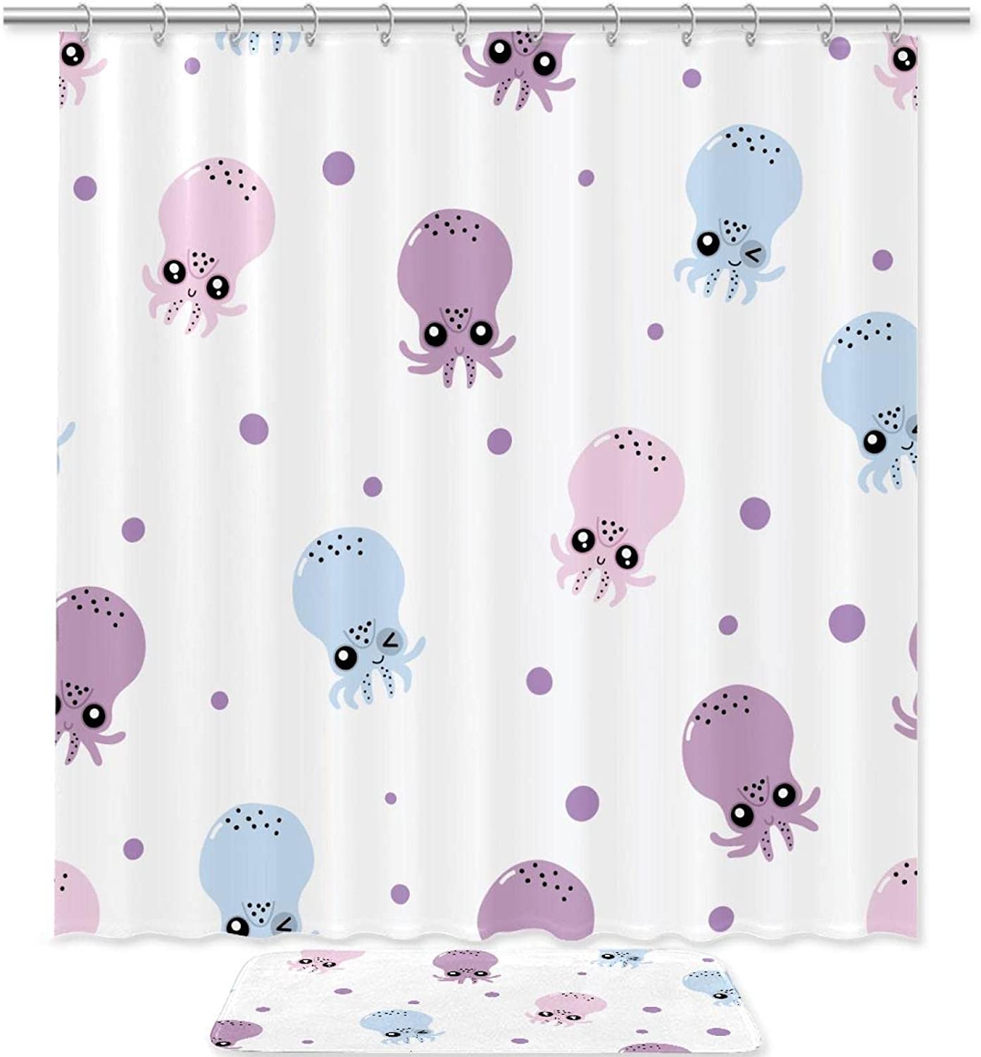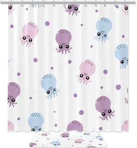Cute Octopus Waterproof Shower Curtain for Kids Bathroom Decor