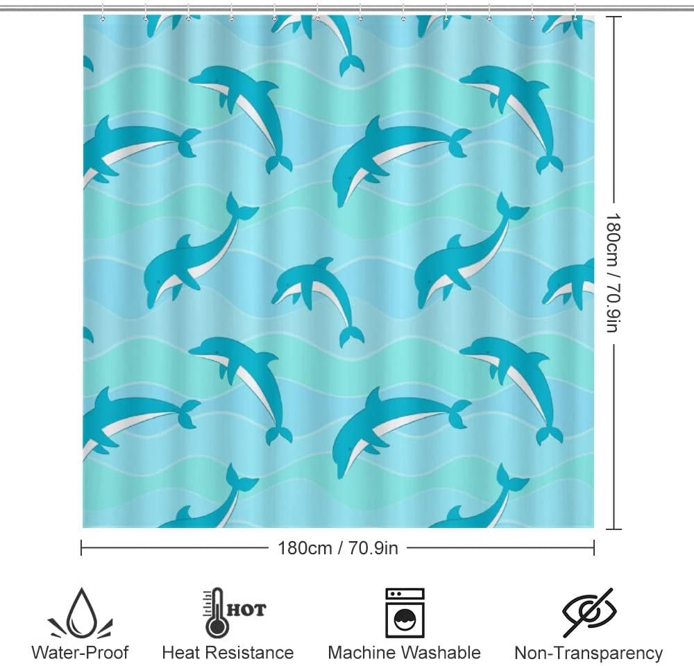 Dolphins and Sea Turtle Swimming Shower Curtain – Waterproof for Bathroom