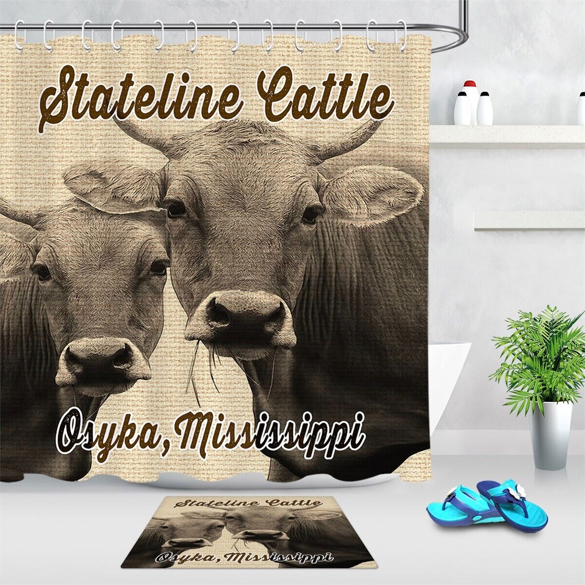 Faded Cows Photo Style Shower Curtain, Rustic Country Bathroom Decor