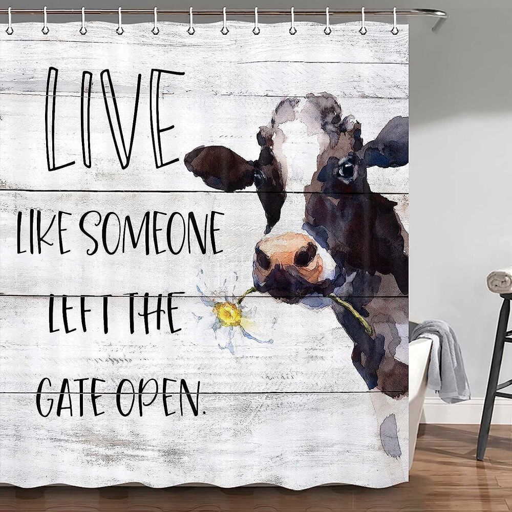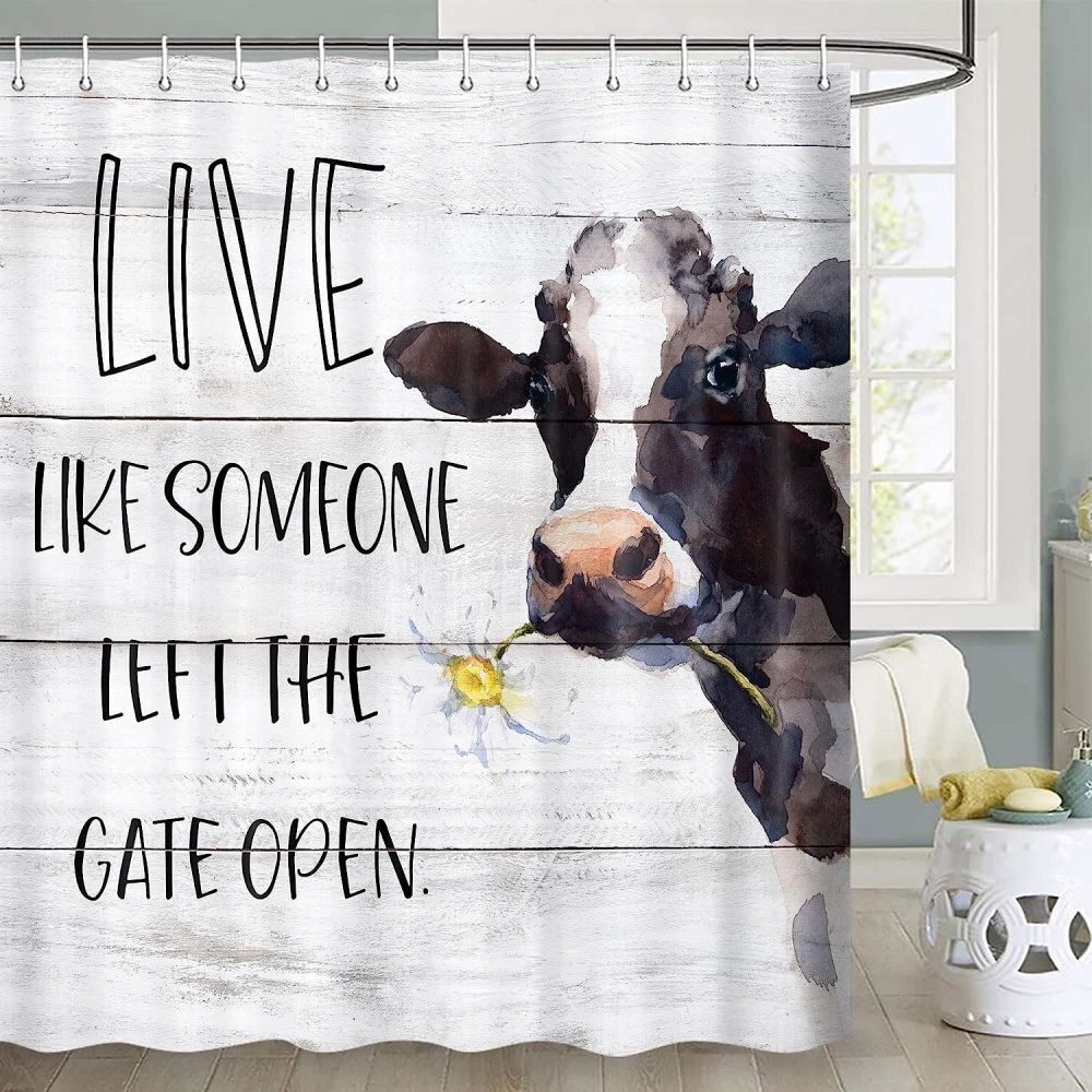 Flower Letters Shower Curtain, Rustic Grey Cow Print Bathroom Decor