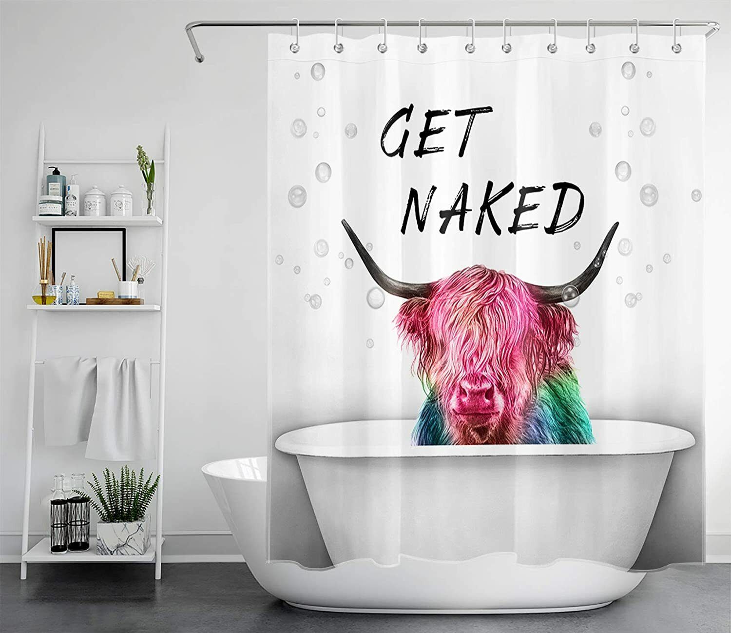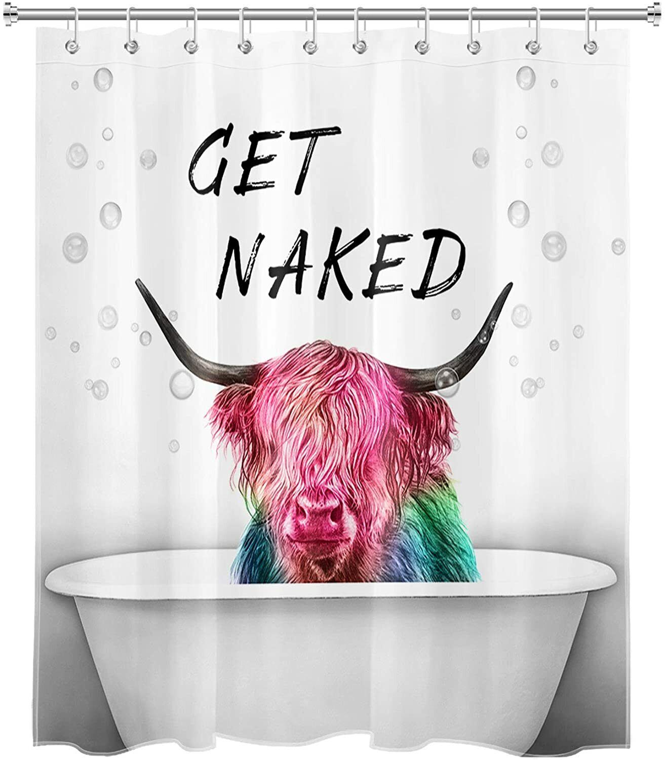 Funny Animal Get Naked Shower Curtain, Highland Cow Bathroom Decor