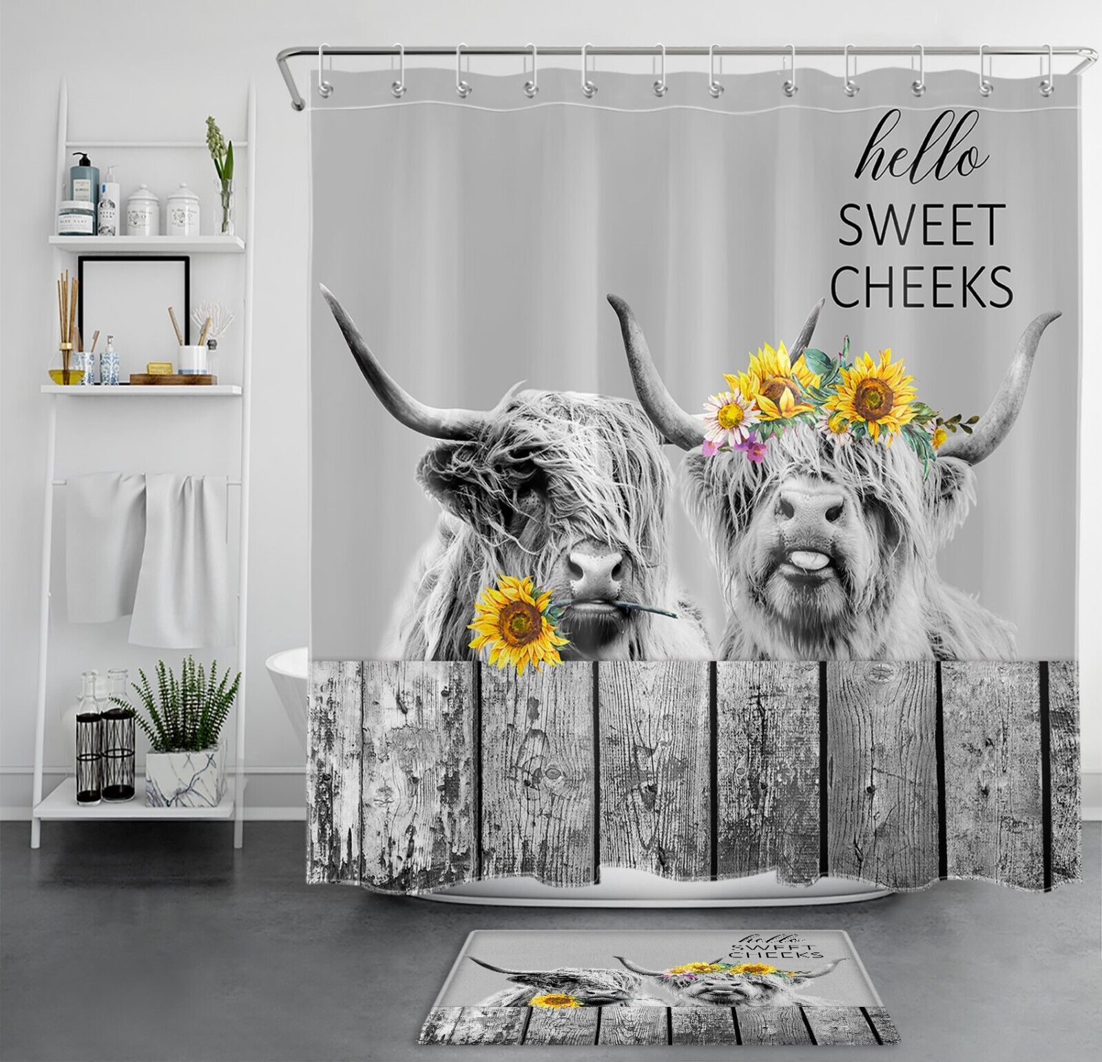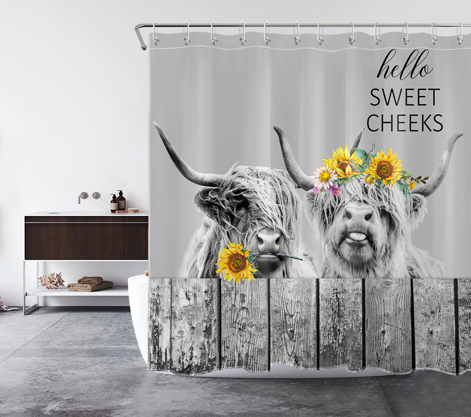 Funny Highland Cow Shower Curtain – Rustic Farmhouse Bathroom Decor