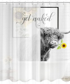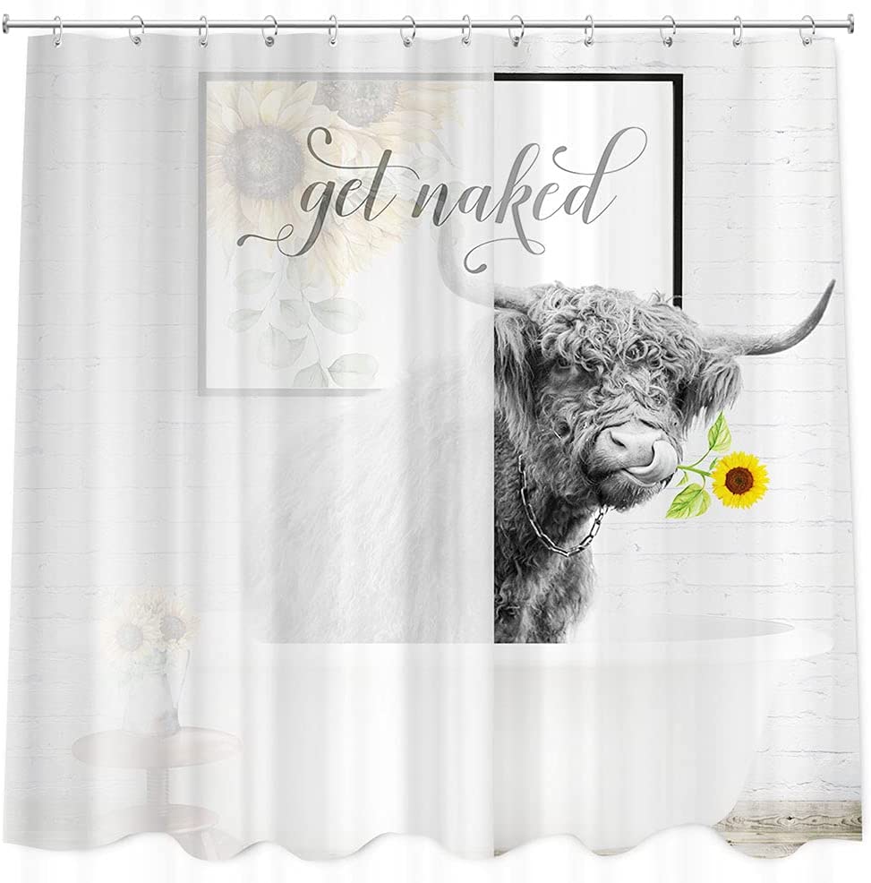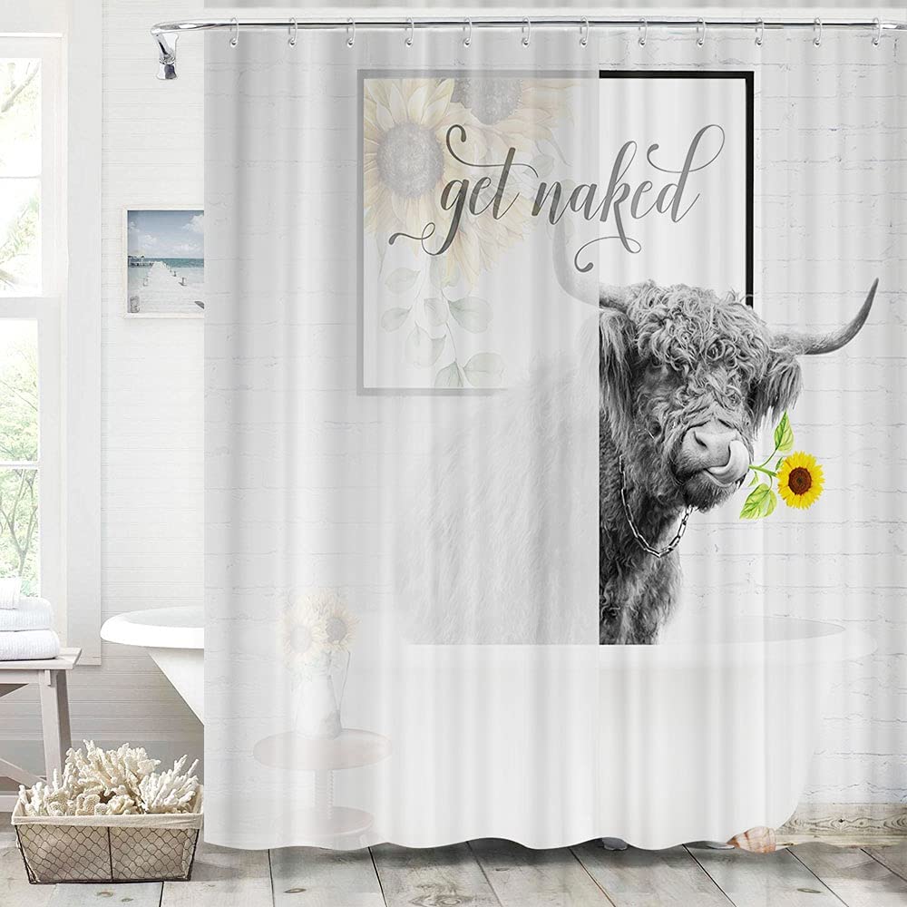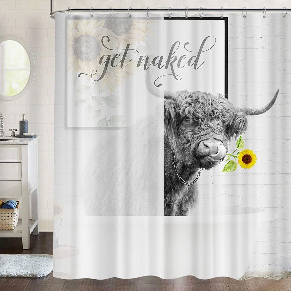 Funny Highland Cow Shower Curtain, Rustic Sunflower Farmhouse Bath Curtain Accessories