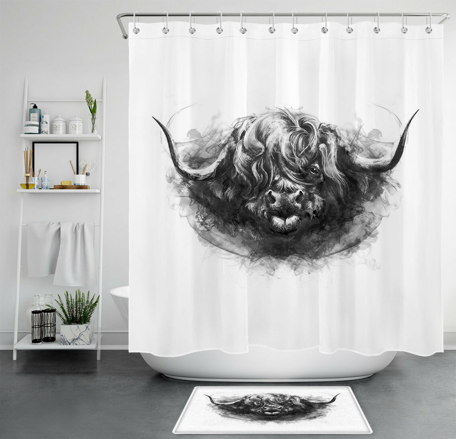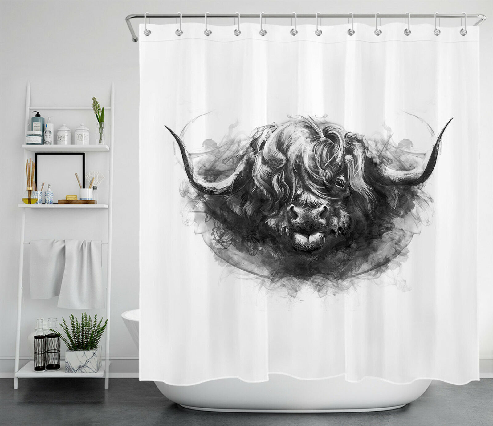 Funny Longhorn Highland Cow Shower Curtain for a Cute and Quirky Bathroom Accessory