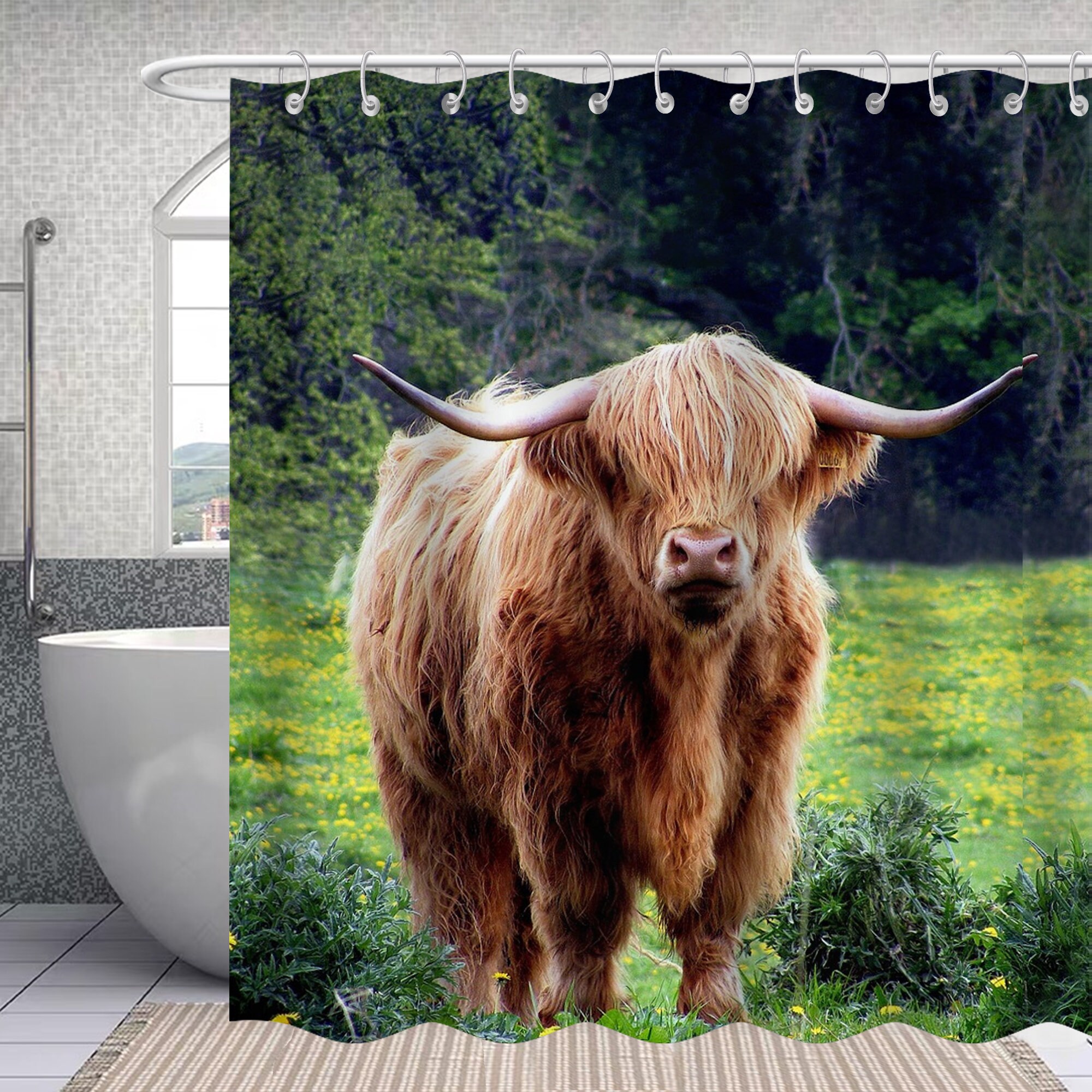 Grass Bull Shower Curtain, Highland Cow Modern Bathroom Decor