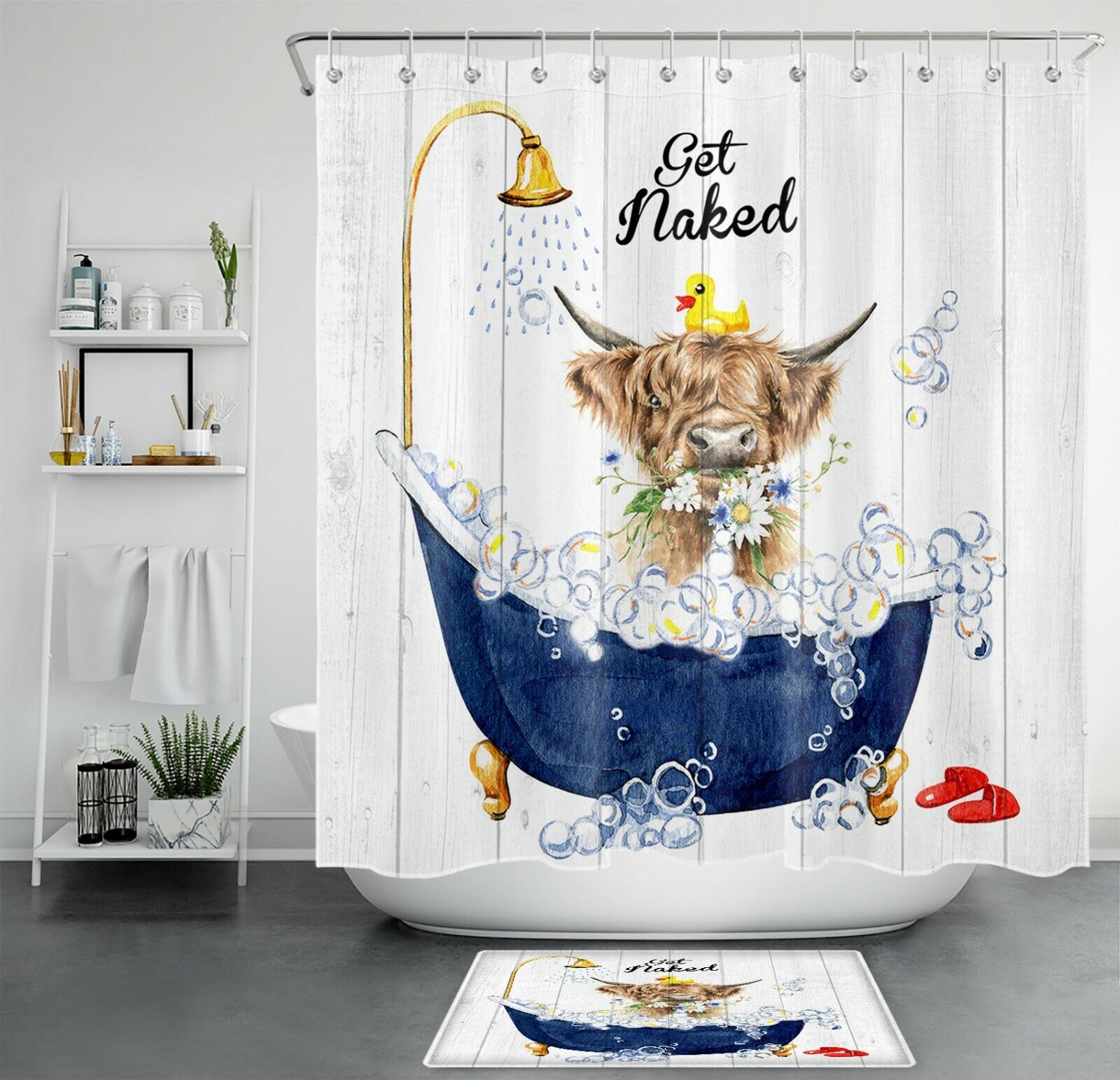 Highland Board Cow Funny Stripping Shower Curtain for Bathroom Decor
