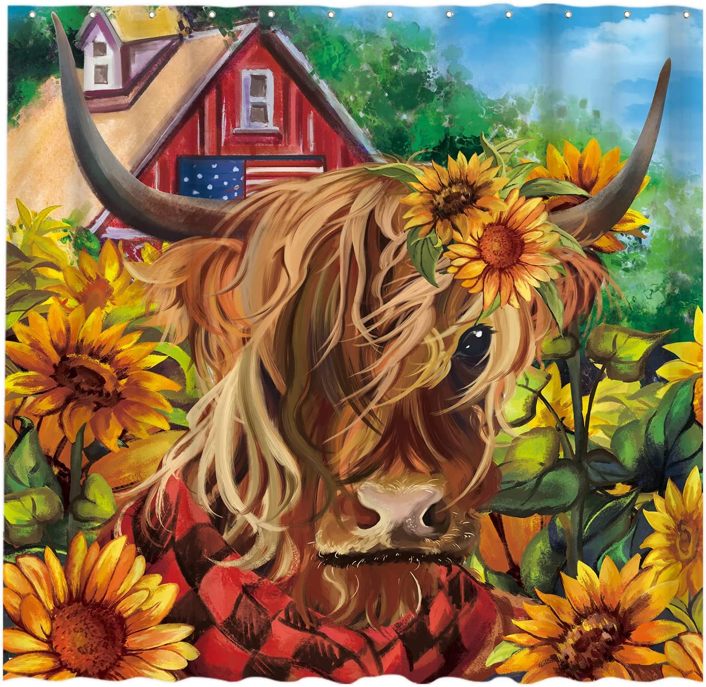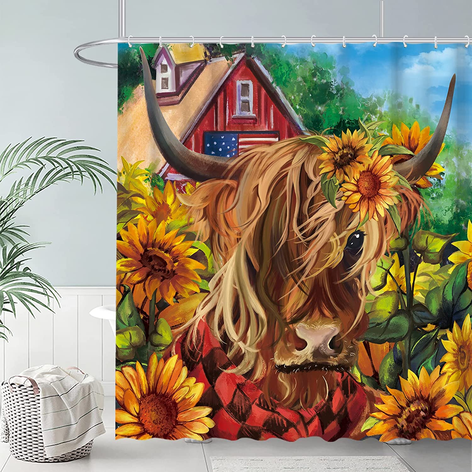 Highland Cow Bull Shower Curtain for Fall Bathroom Decor