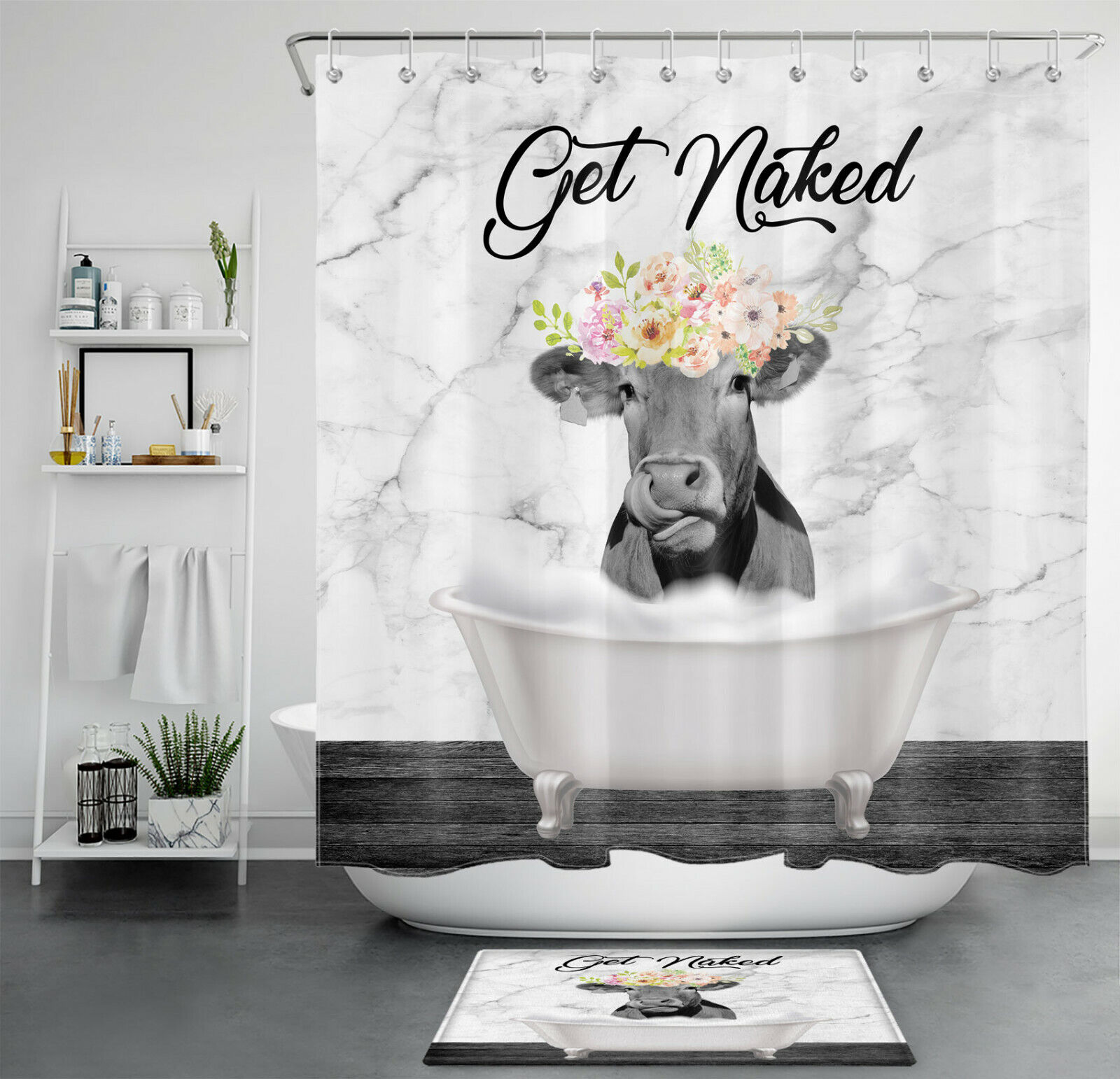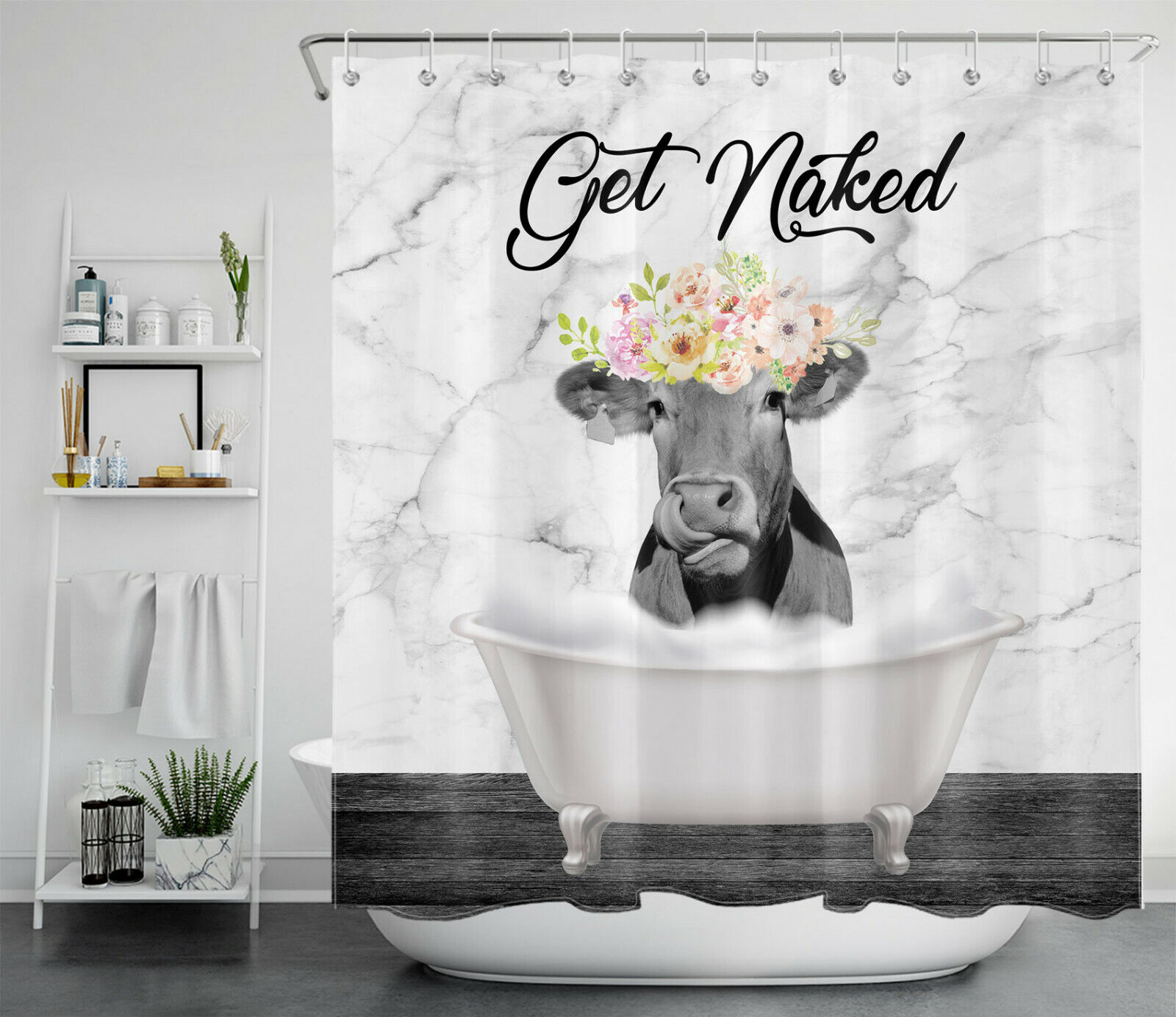 Highland Cow Floral Shower Curtain for Farmhouse Bathroom Decor