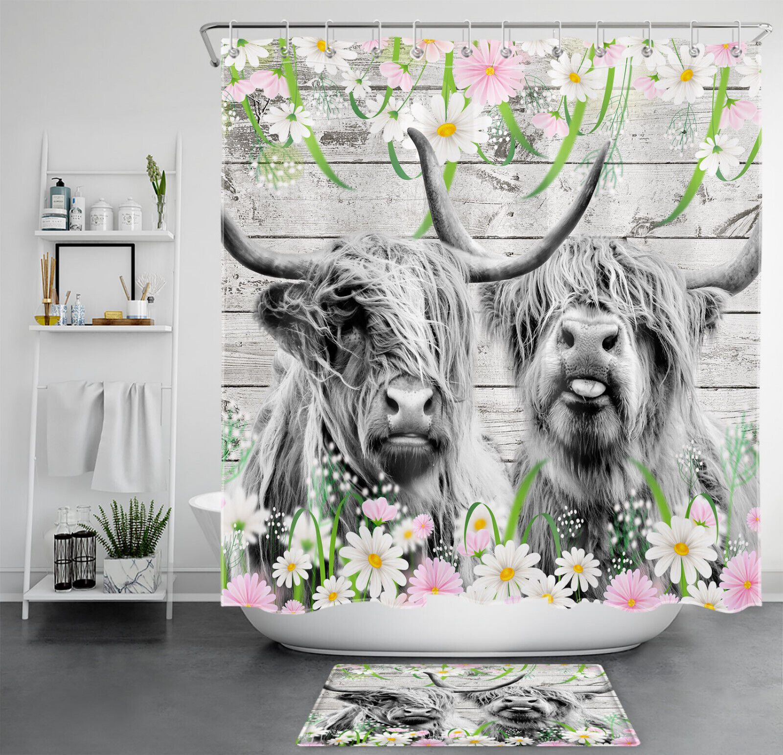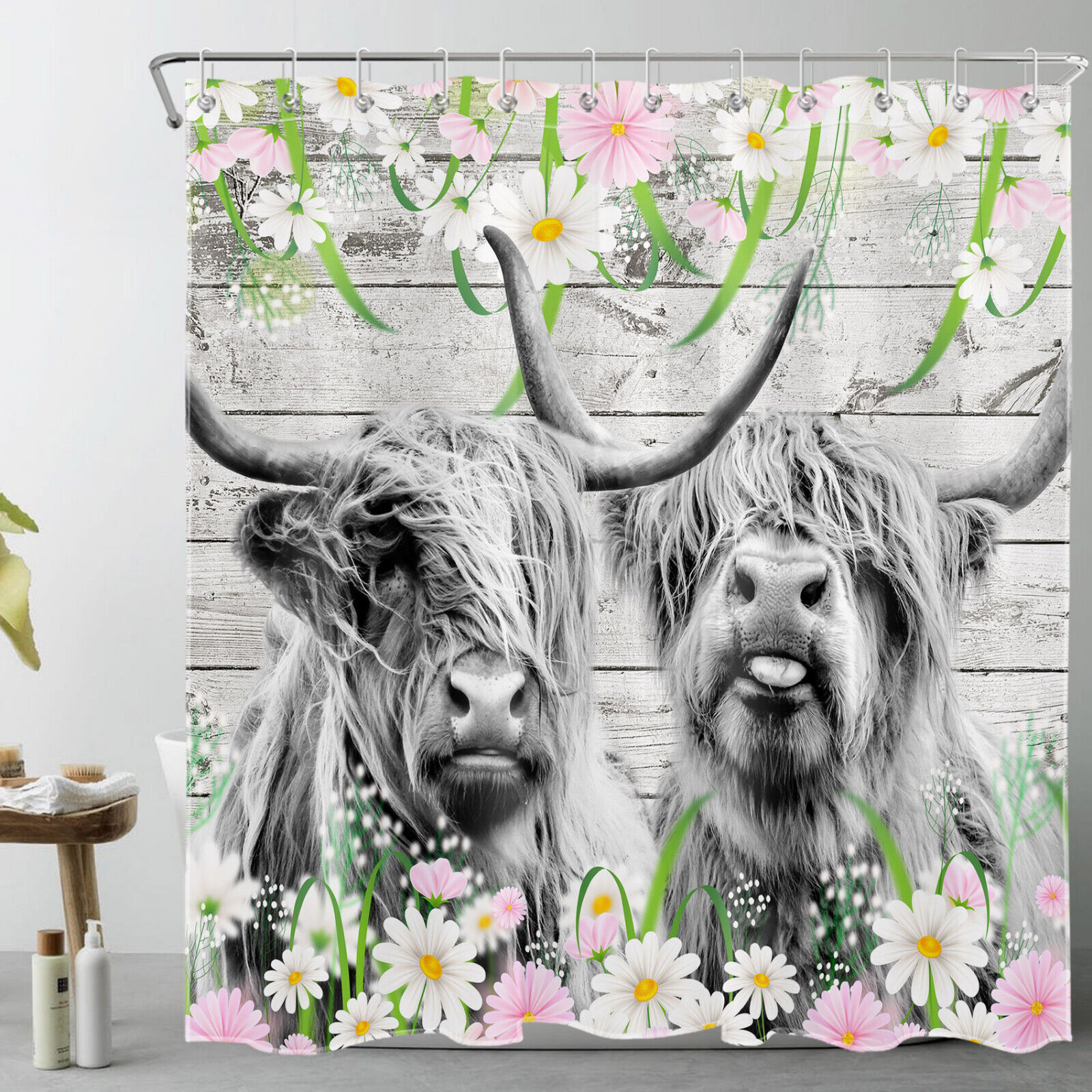 Highland Cow Rustic Retro Wood Shower Curtain for Bathroom Decor