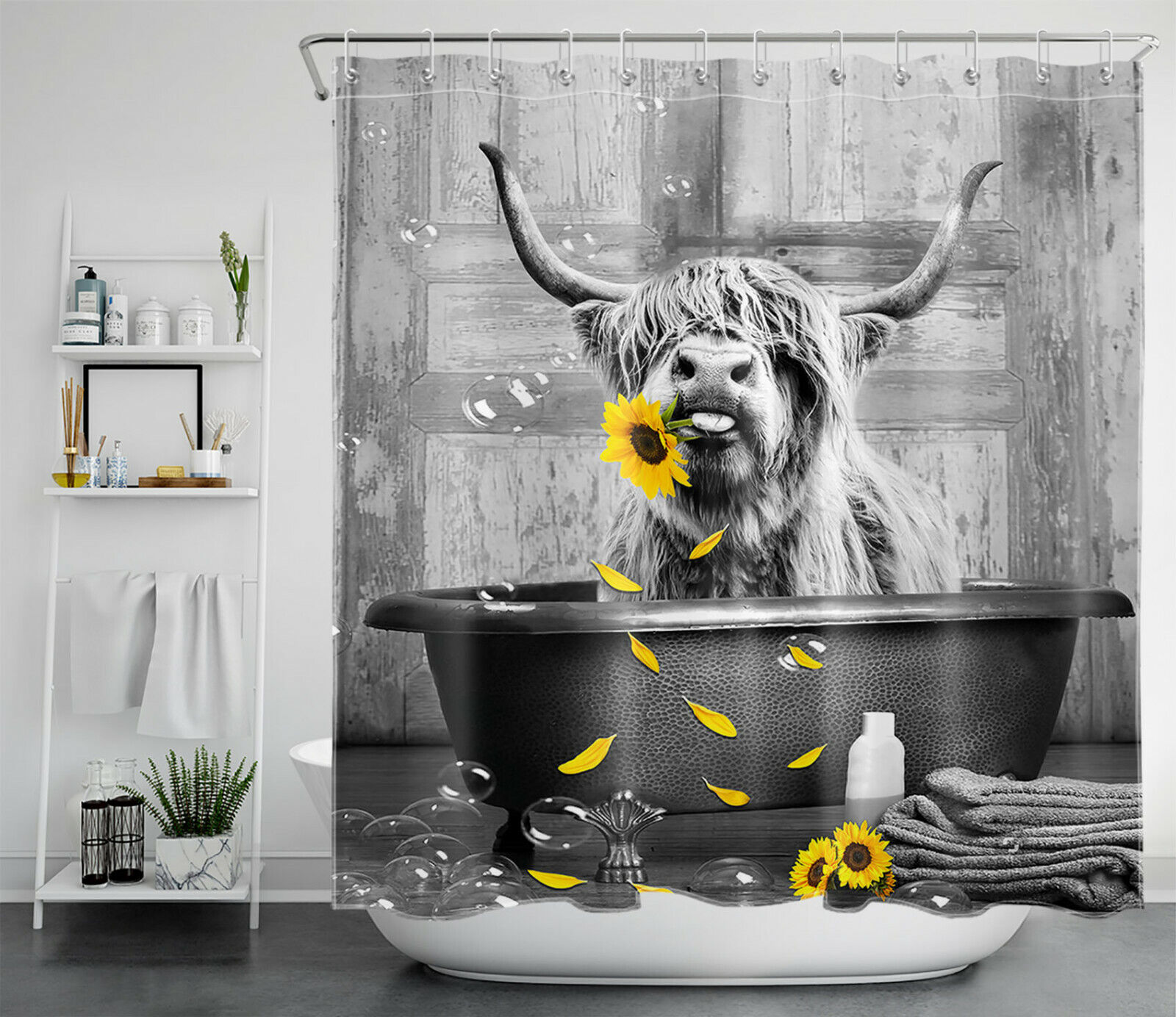 Highland Cow Sunflower Bathtub Shower Curtain for a Farmhouse-Inspired Bathroom