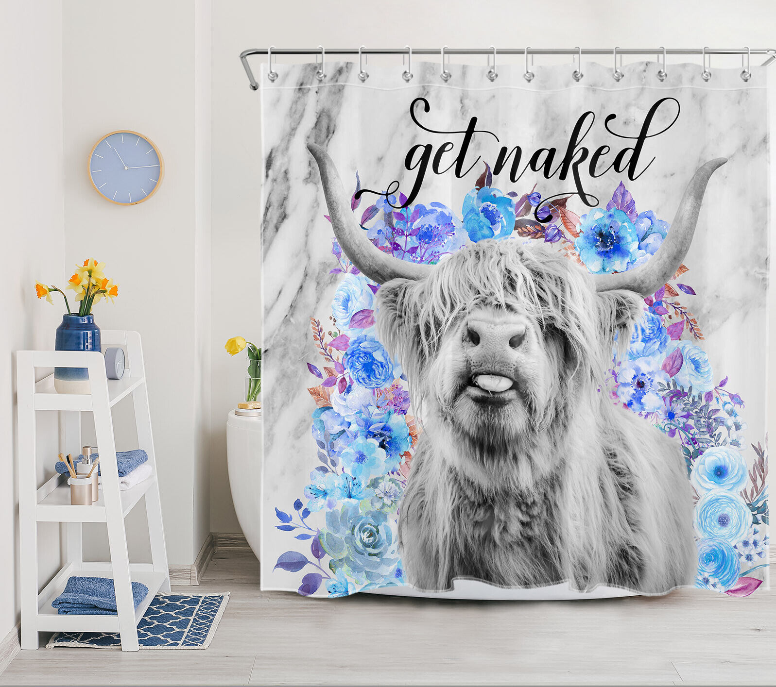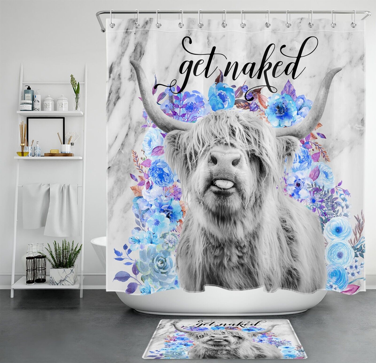 Highland Marble Blue Gray Cow Shower Curtain for Bathroom Decoration