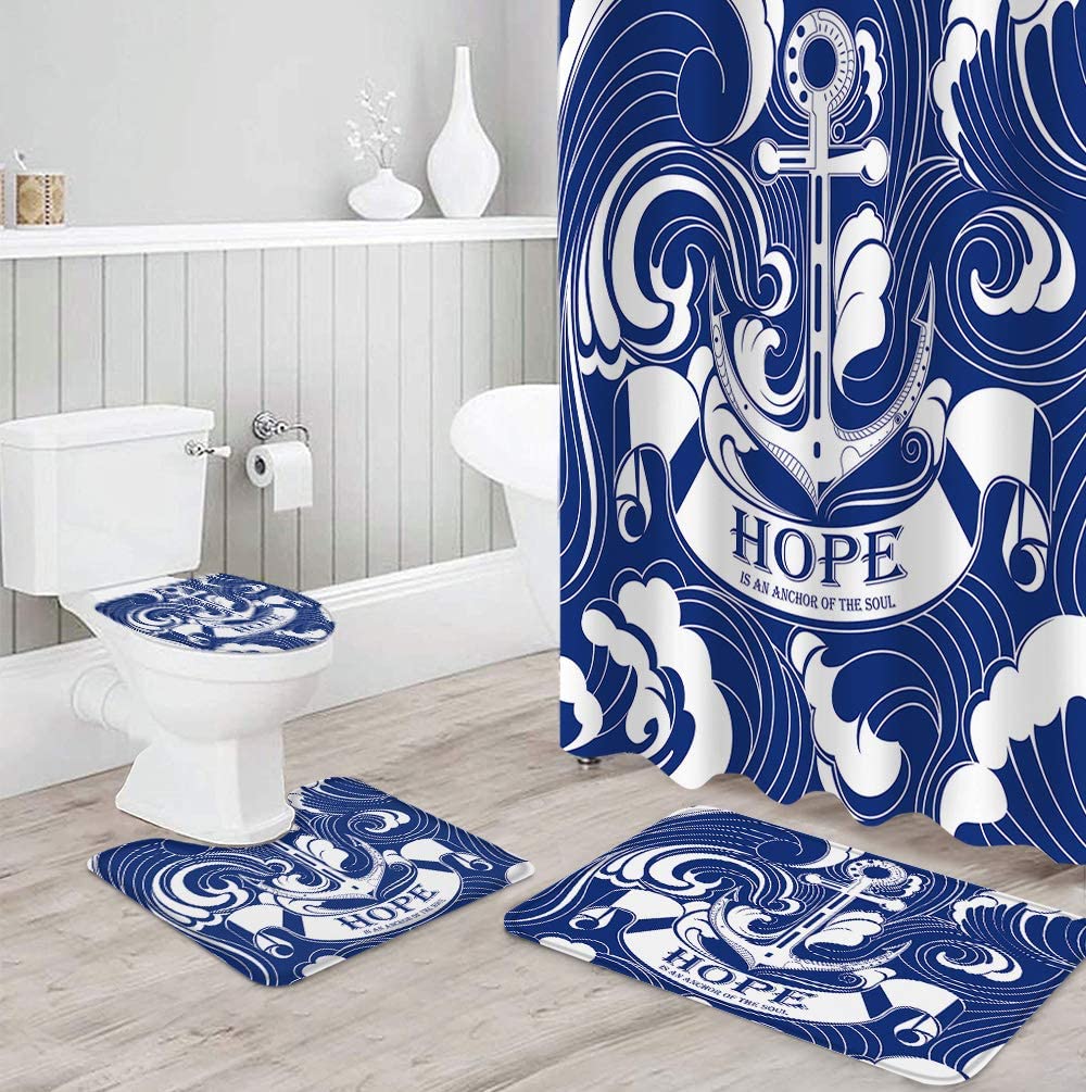 Hope is the Anchor of the Soul Shower Curtain with Navy White Print for an Encouraging Bathroom Decor
