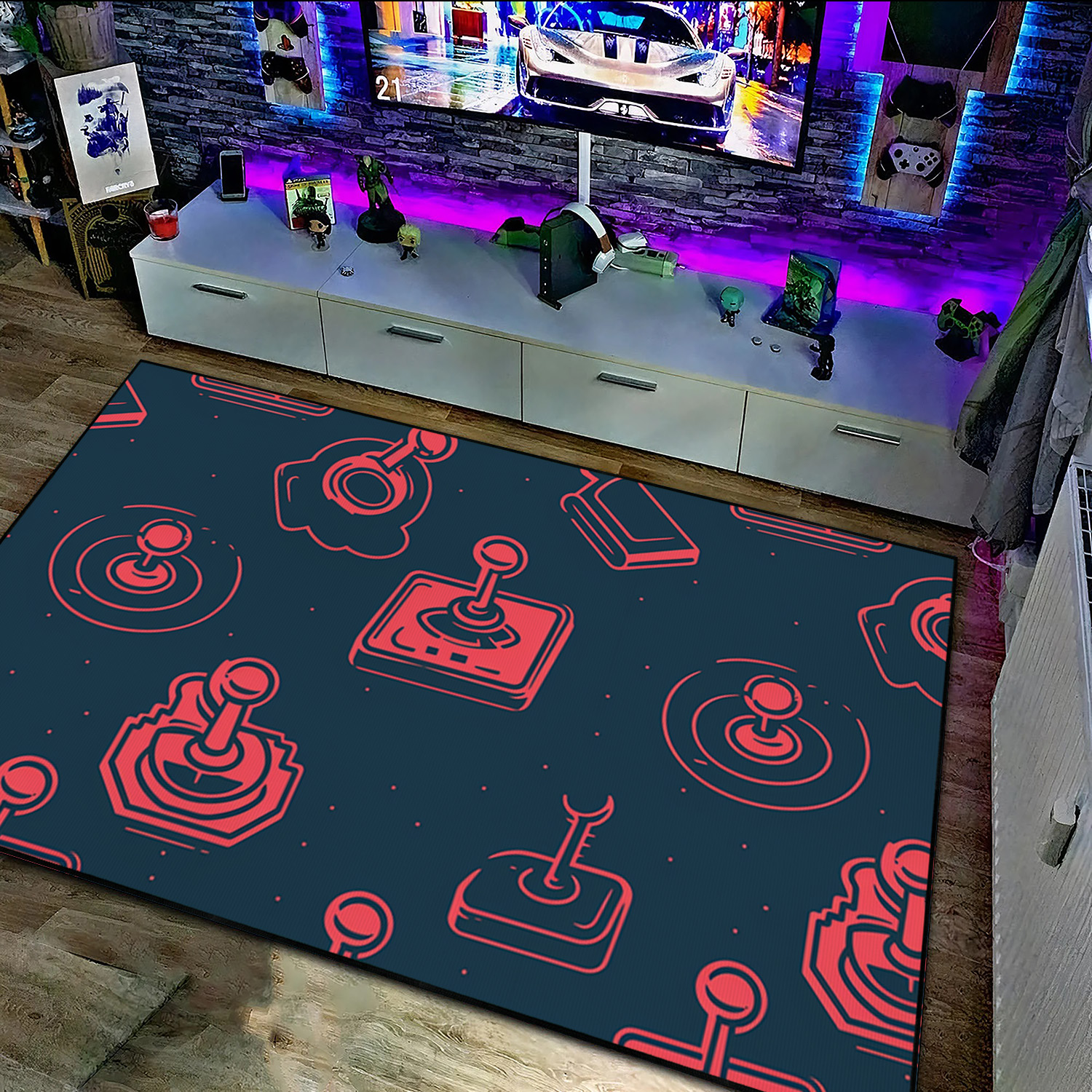 Joystick Arcade Pattern Rug, Customizable Gamer Rug for Living Room