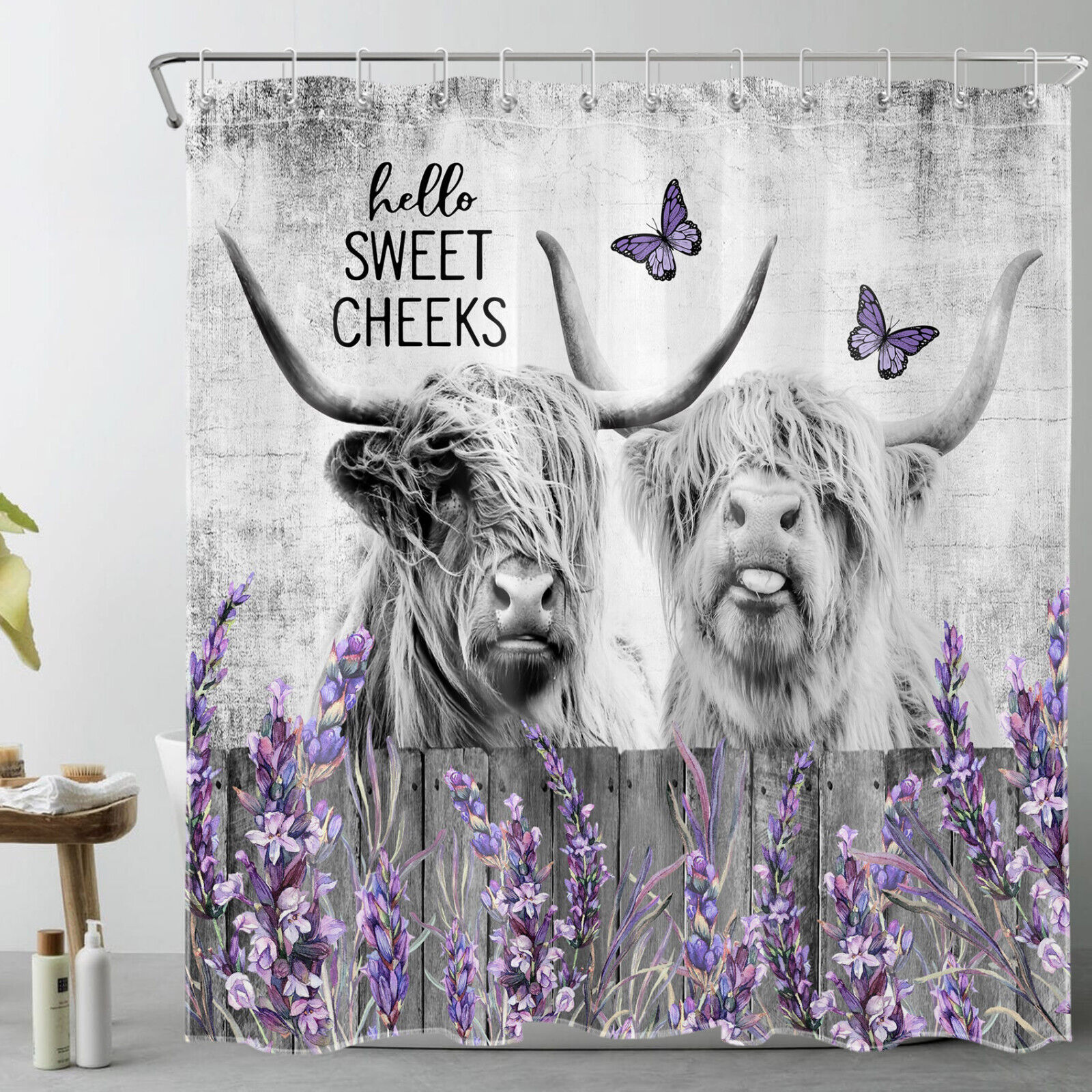 Magnify any Bathroom Decor with Purple Lavender Grey Highland Cow Shower Curtain and Accessories Set