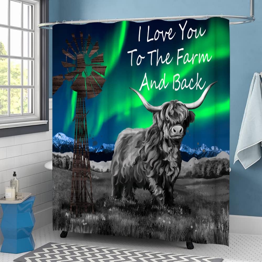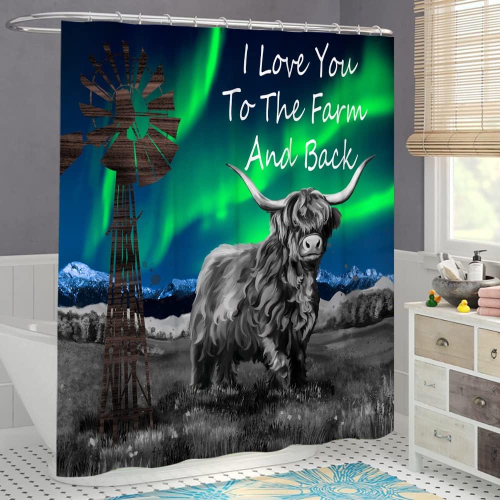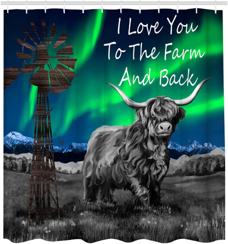 Northern Lights Longhorns Cow Shower Curtain – Rustic Farm Animal Bathroom Decor