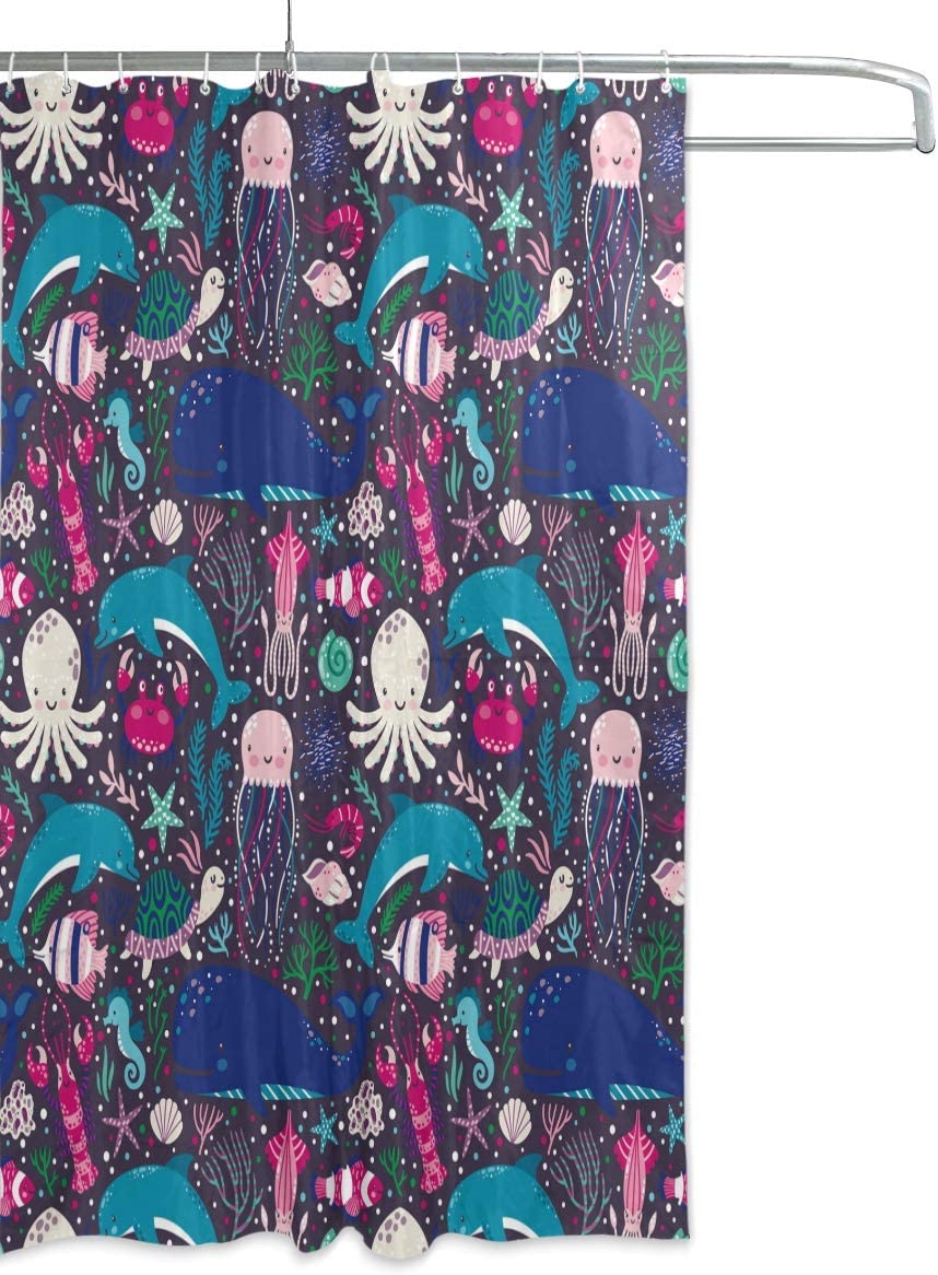 Ocean Life Shower Curtain with Octopus, Whale, Turtle, and Jellyfish for Nautical Bathroom Decor