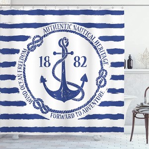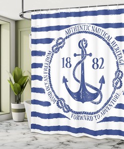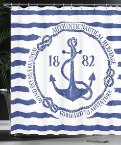 Enhance your bathroom decor with the Old Nautical Emblem Anchor Shower Curtain. This curtain showcases a vintage-inspired design featuring an old nautical emblem anchor set against a striped background, evoking a sense of freedom and maritime heritage.