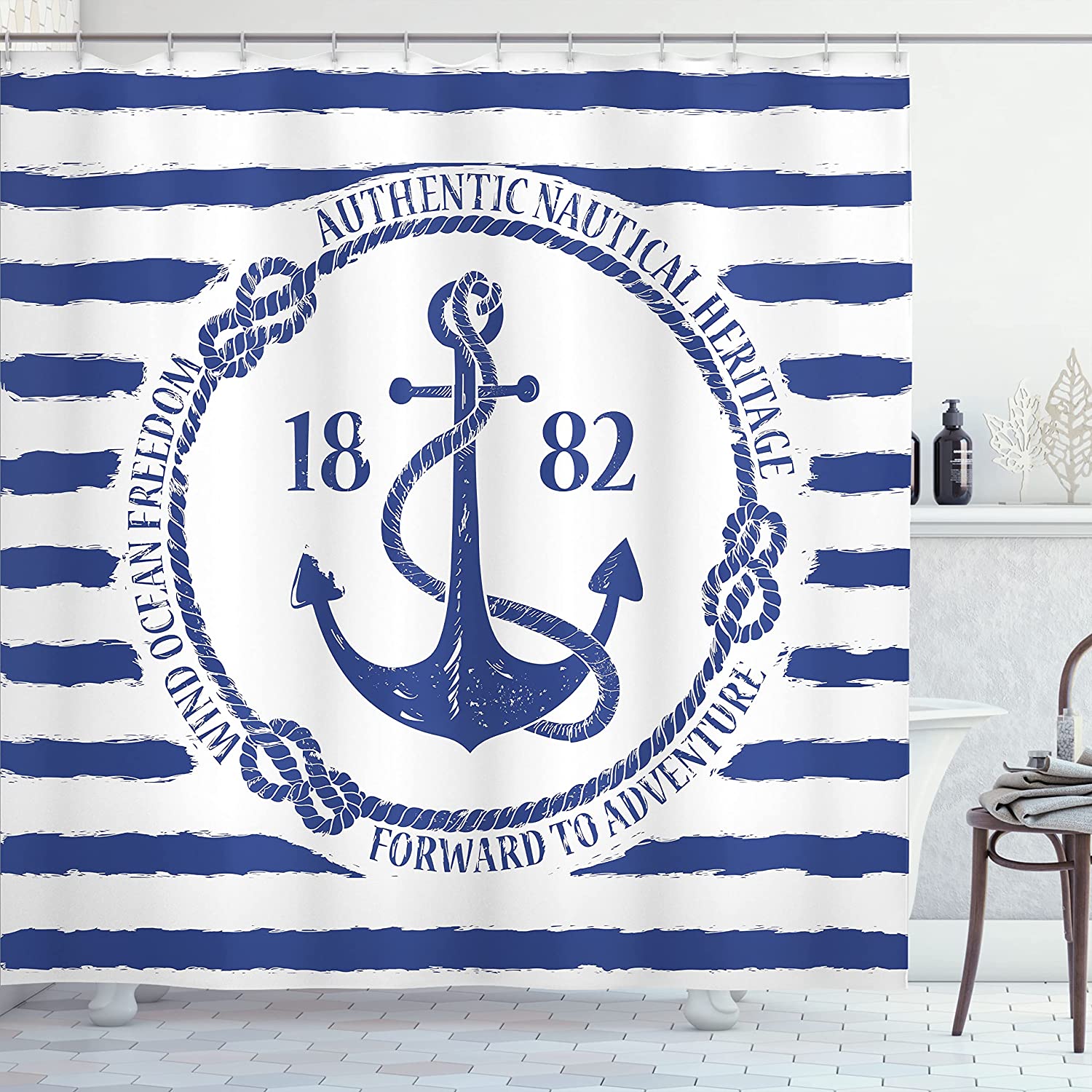 The combination of the anchor emblem and the striped background creates a captivating focal point in your bathroom. It adds a touch of nostalgia and a timeless charm to your space, perfect for those who appreciate the beauty of classic nautical aesthetics.