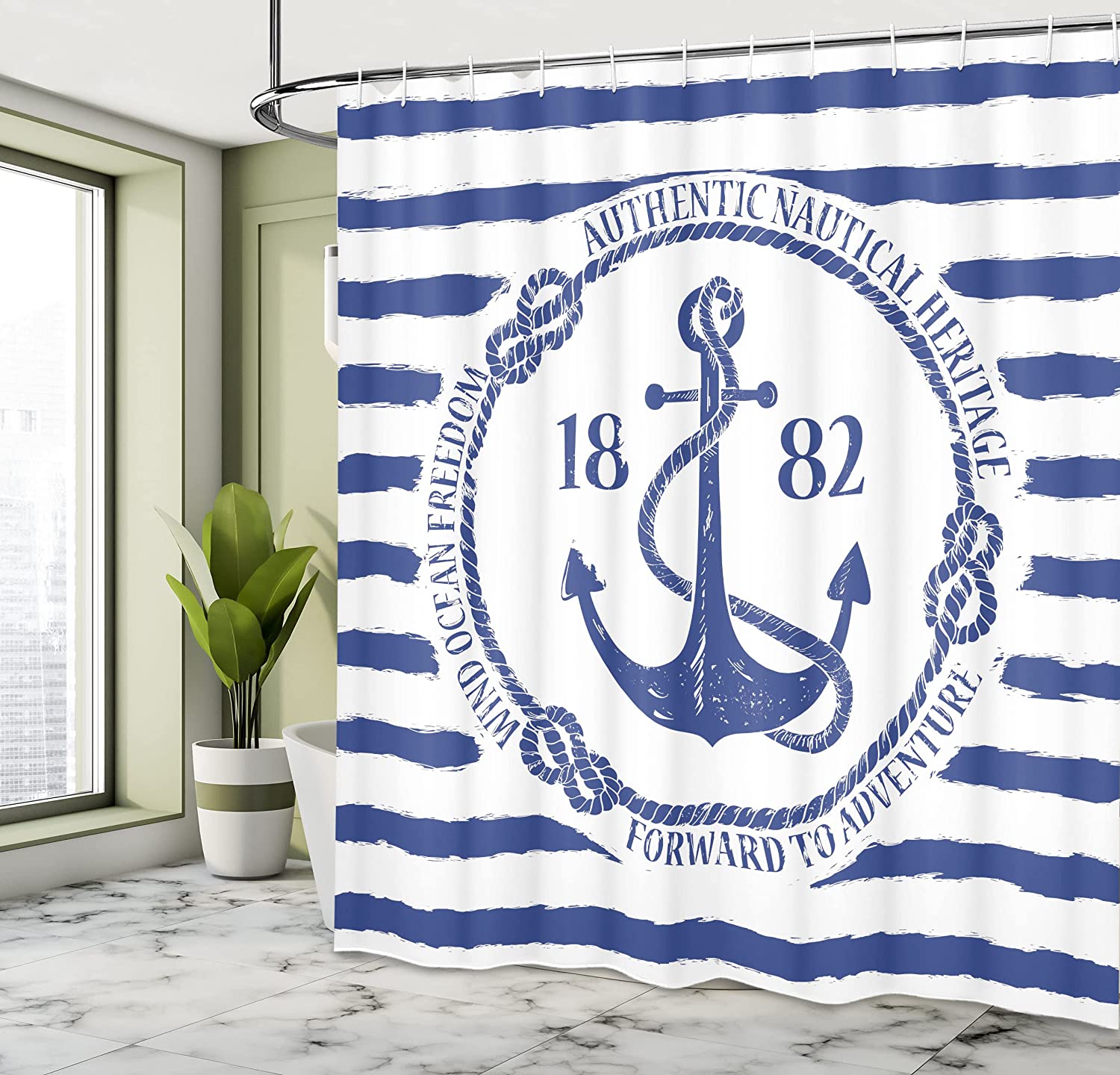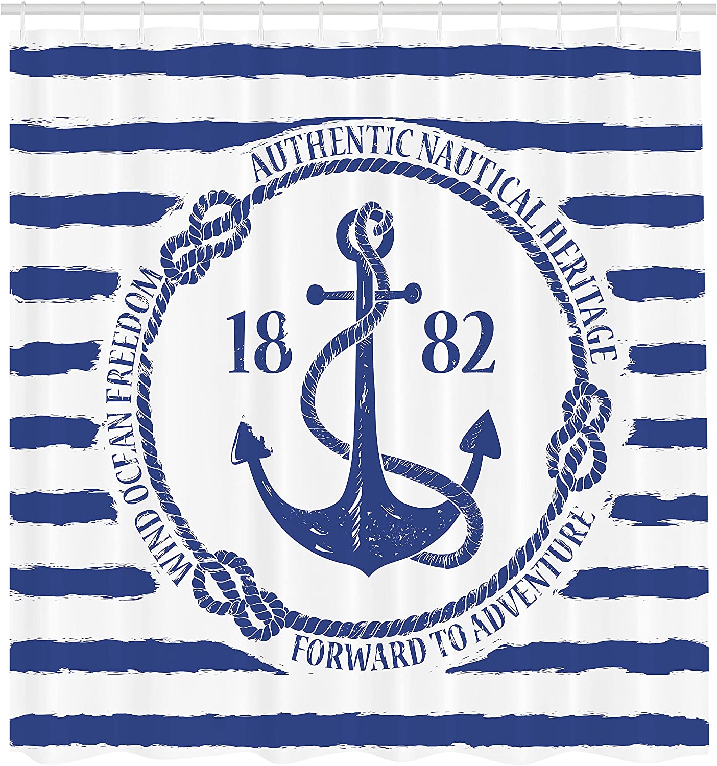 Old Nautical Emblem Anchor Shower Curtain, Striped Background Freedom Heritage- Bathroom Curtain