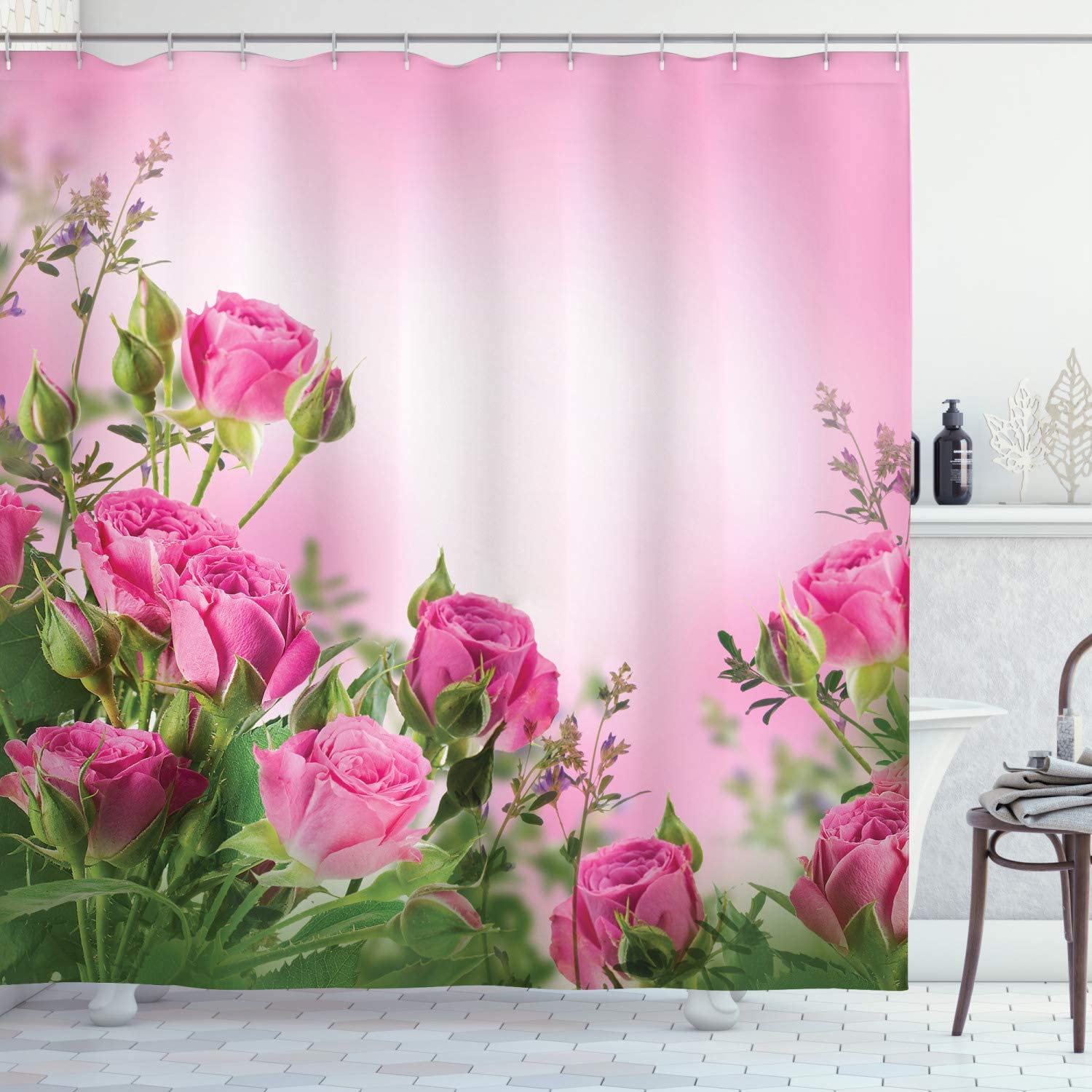 Ombre Roses and Buds Shower Curtain for Spring Season Bathroom Decor