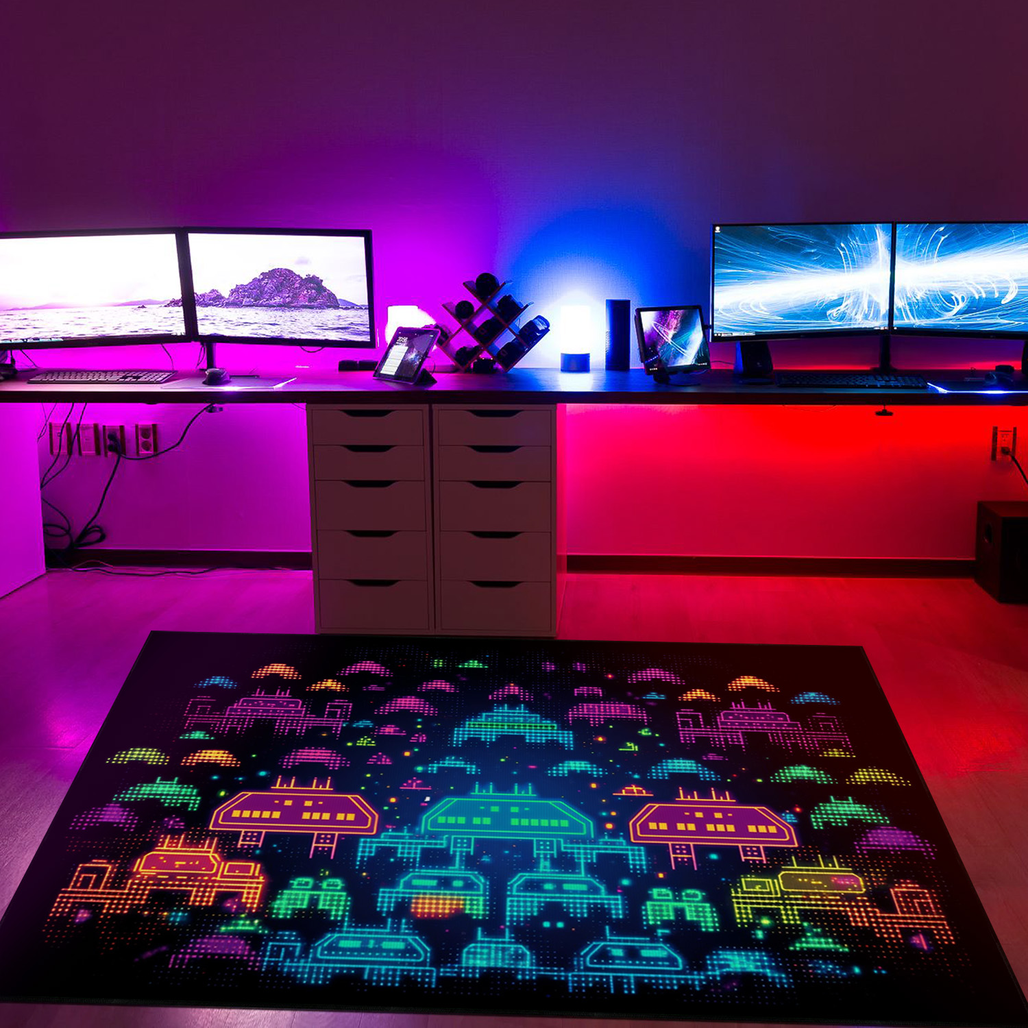 Personalizable Multi-Colored Space Invaders Arcade Game Wallpaper Rug