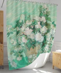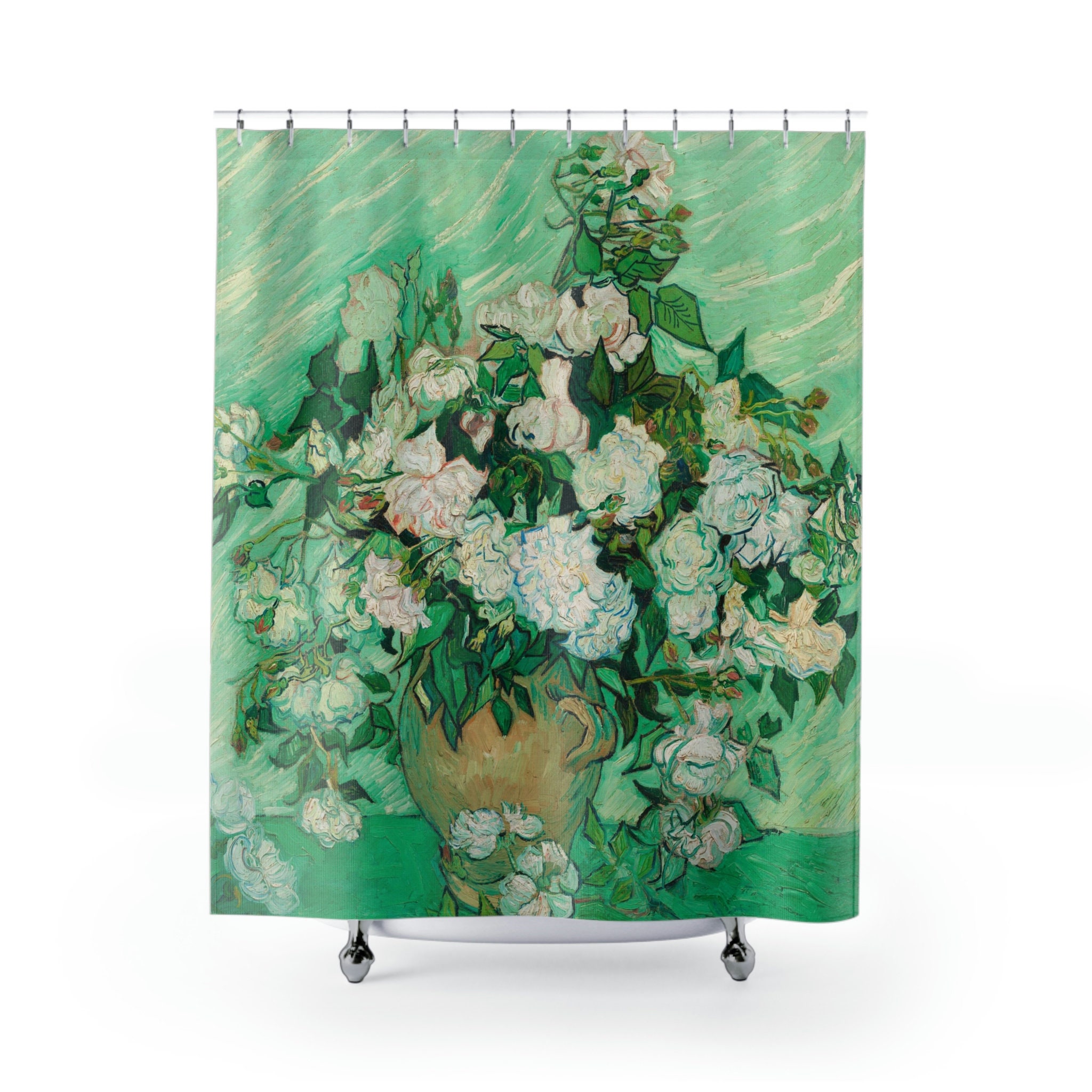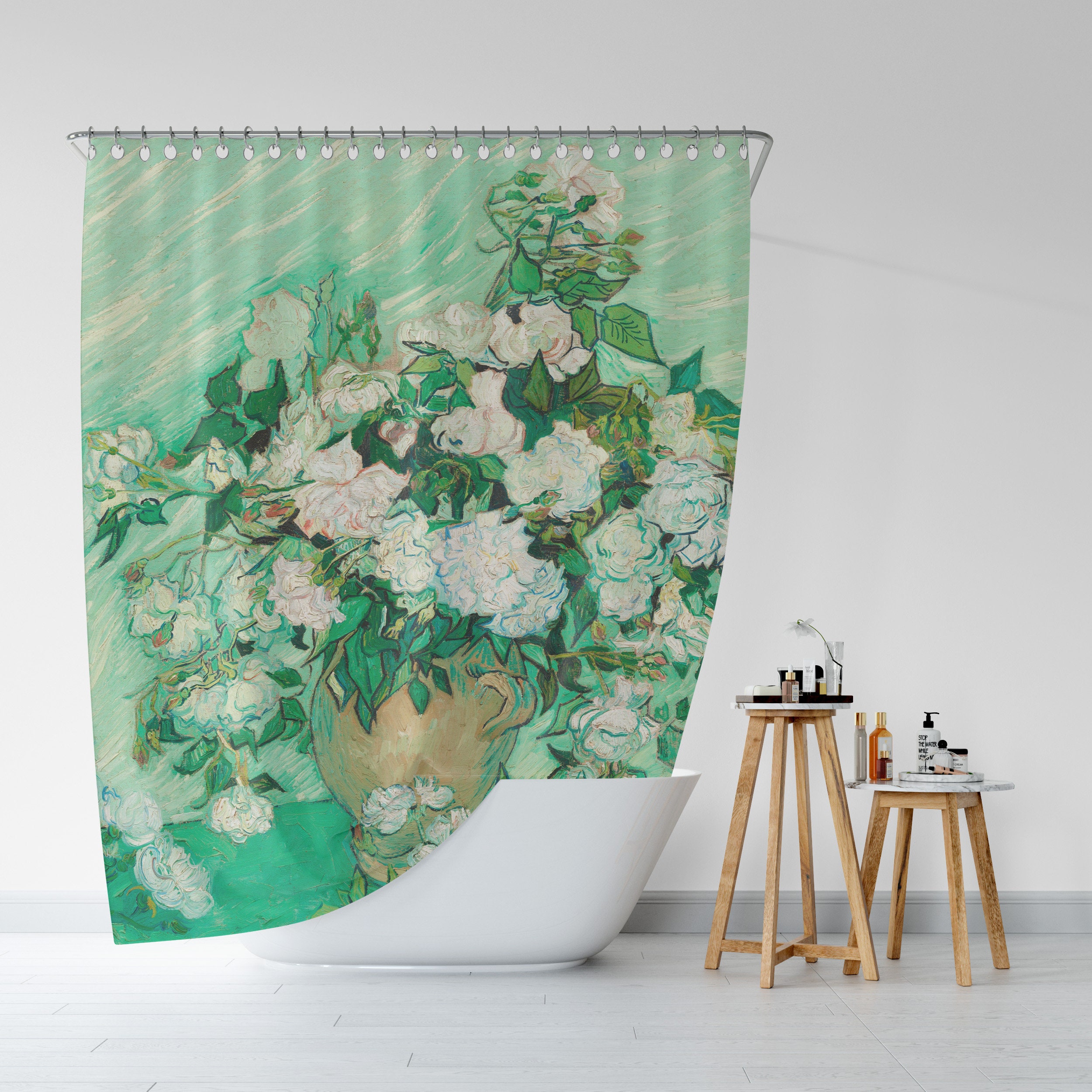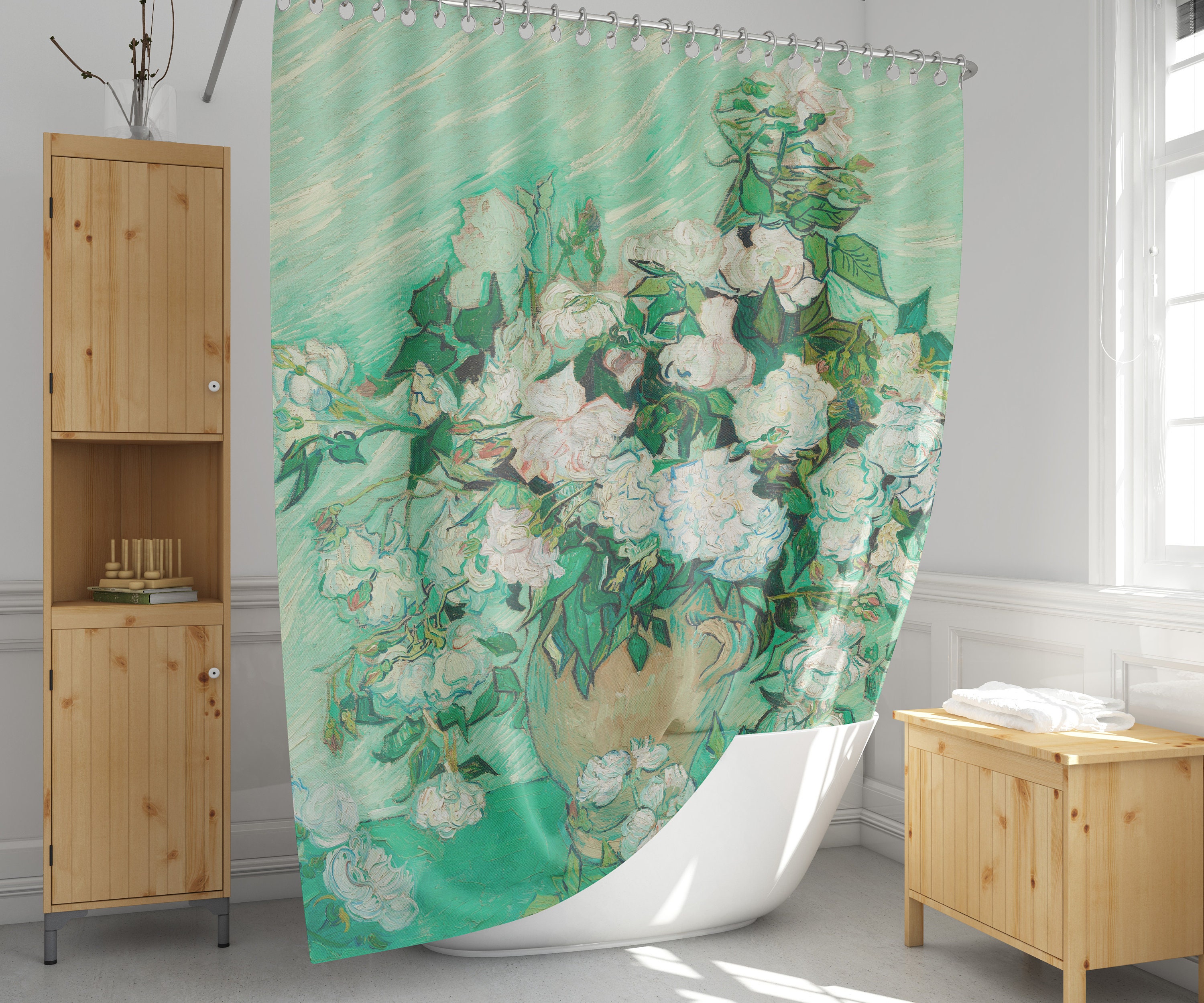 Pink Roses Fine Art Shower Curtain – Antique Floral Bathroom Decor Gift