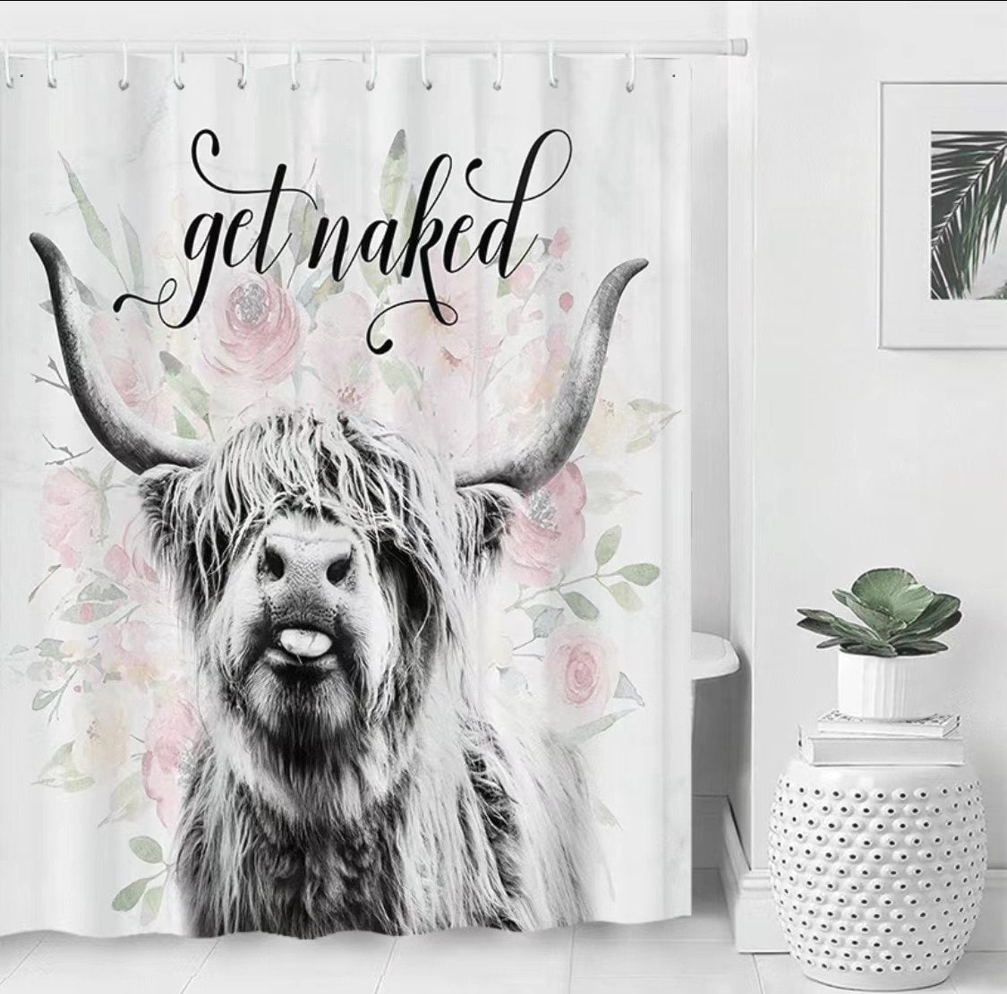 Portrait Highland Cow Shower Curtain, Western Wildlife Animal Bathroom Decor
