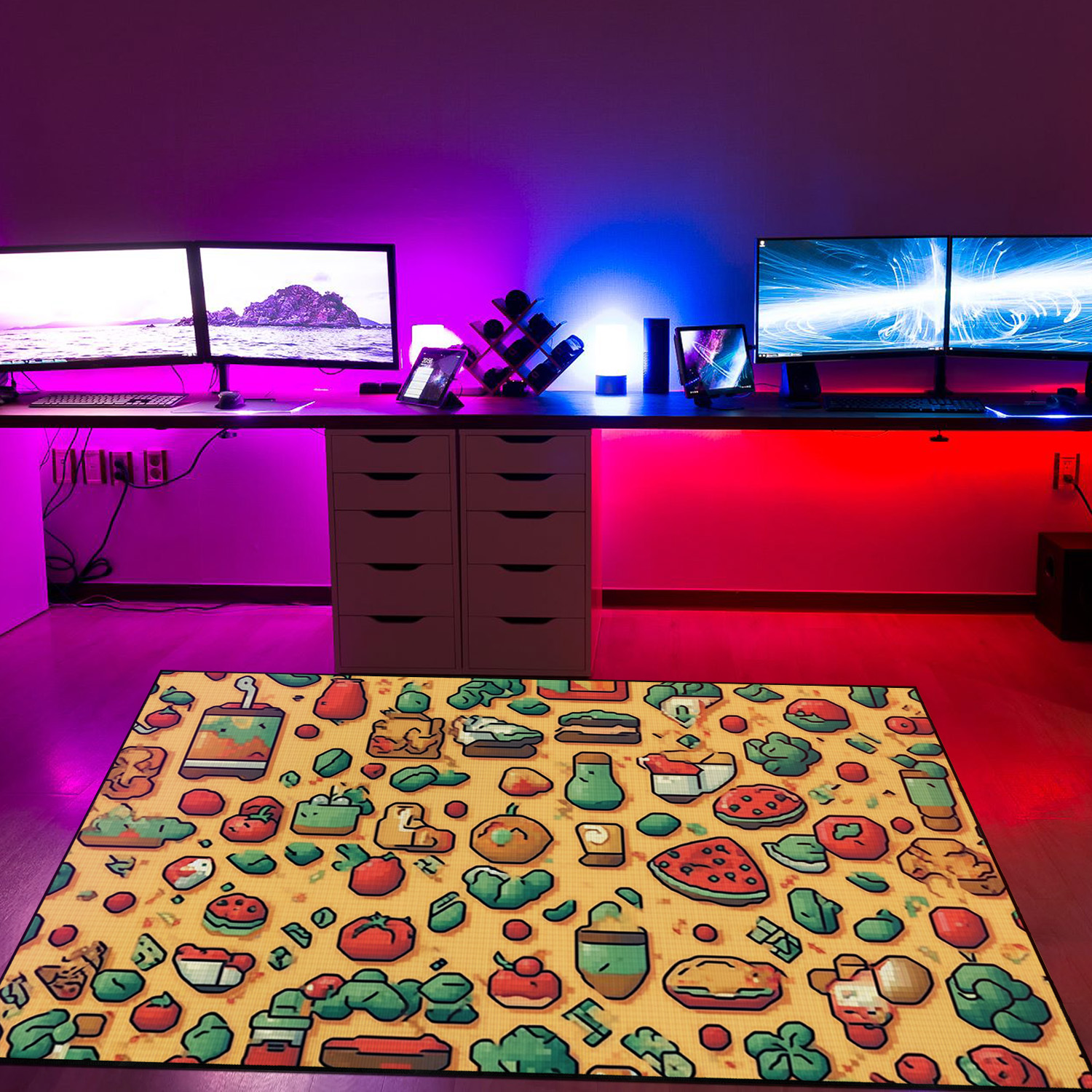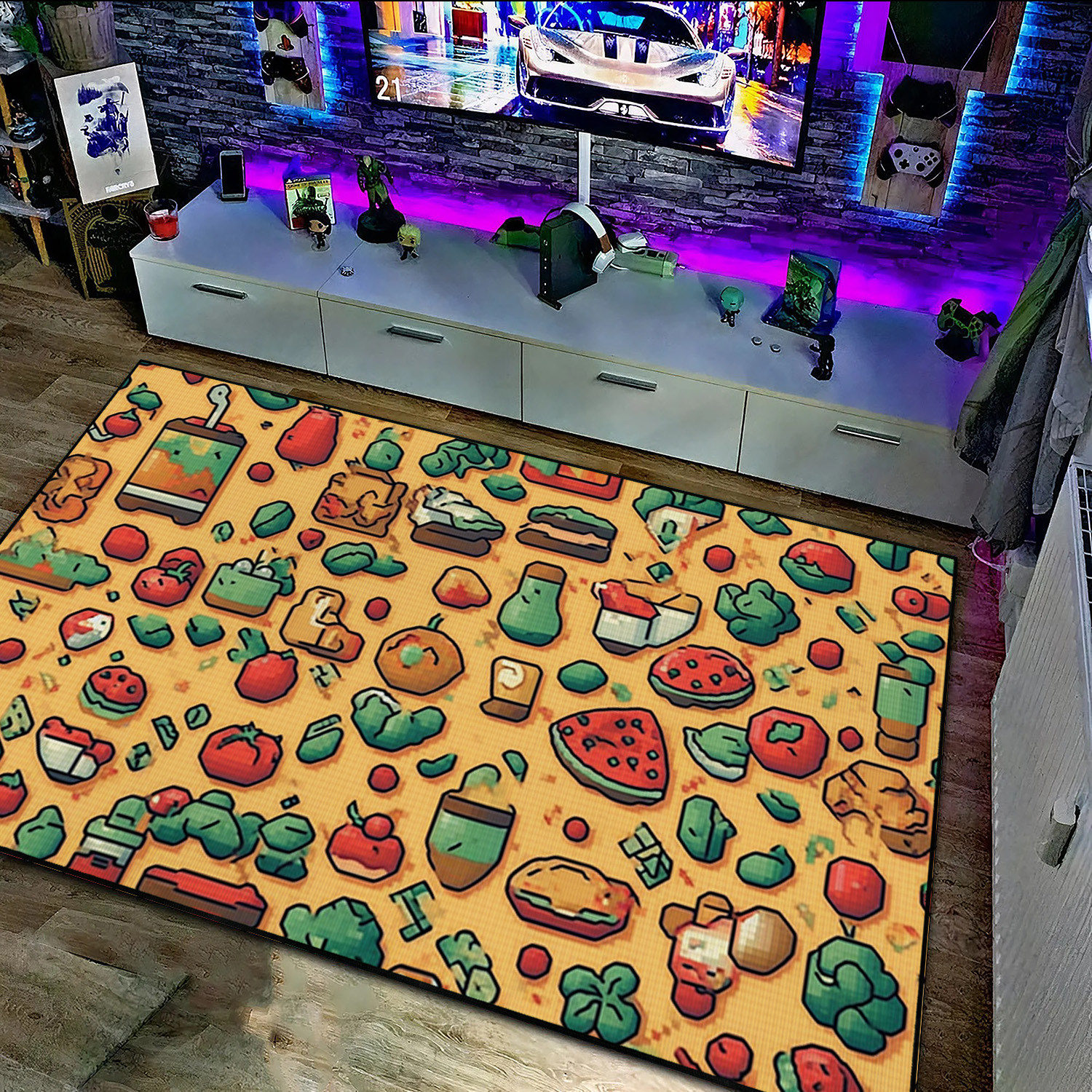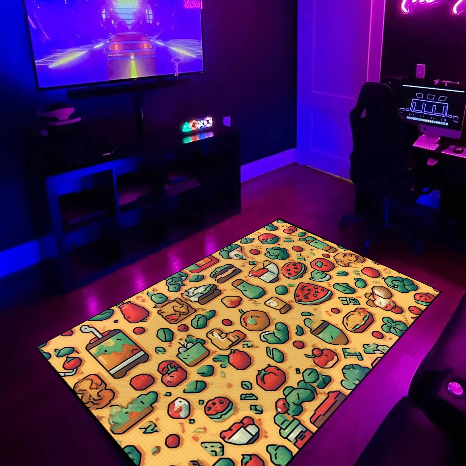 Retro Arcade Food Arcade Pattern Rug, Personalized Area Rug for Living Room