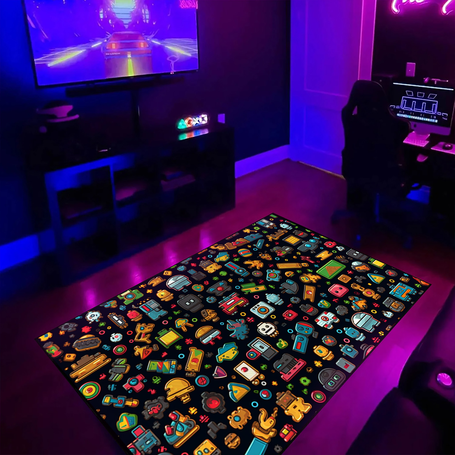 Retro Game Power-Ups Arcade Pattern Area Rug