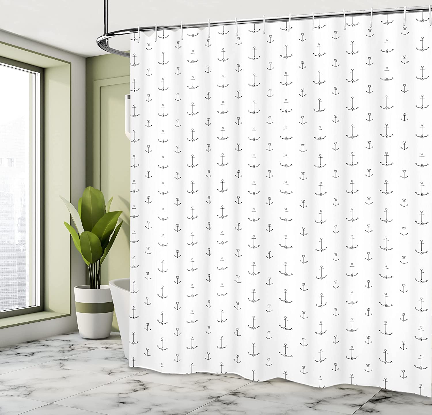 Retro Hand Drawn Anchor Shower Curtain, Tattoo Style Nautical Hipster Retro Art Design- Bathroom Curtain