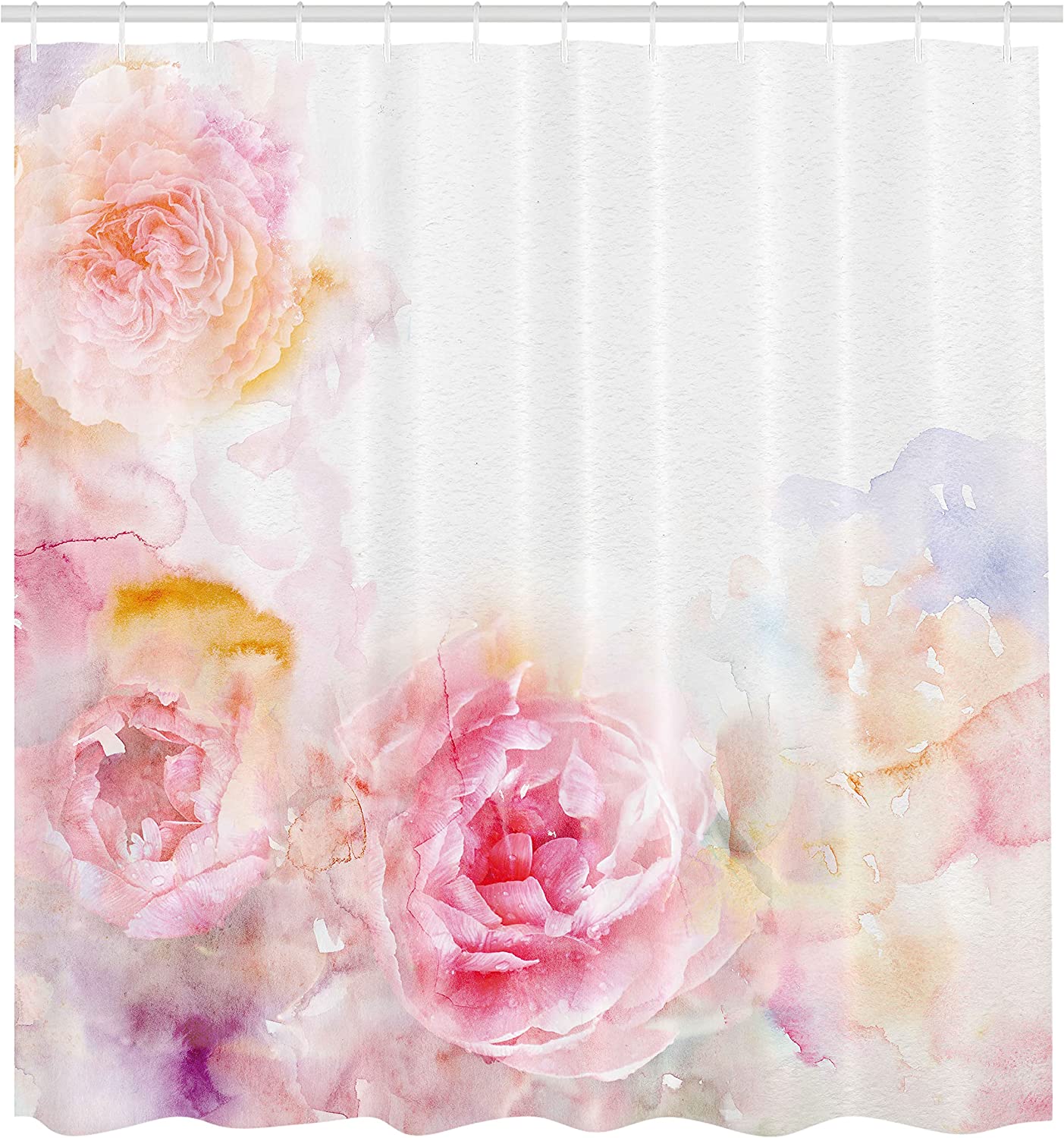 Romantic Victorian Flowers Shower Curtain, Nature Garden Image Cloth Bathroom Decor, Pale Pink Hot Pink